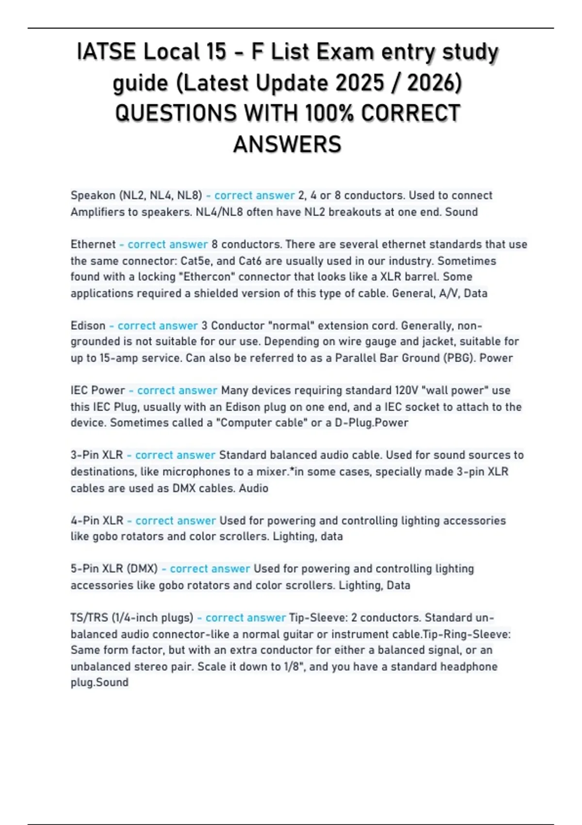 , IATSE Local 15 - F List Exam entry study