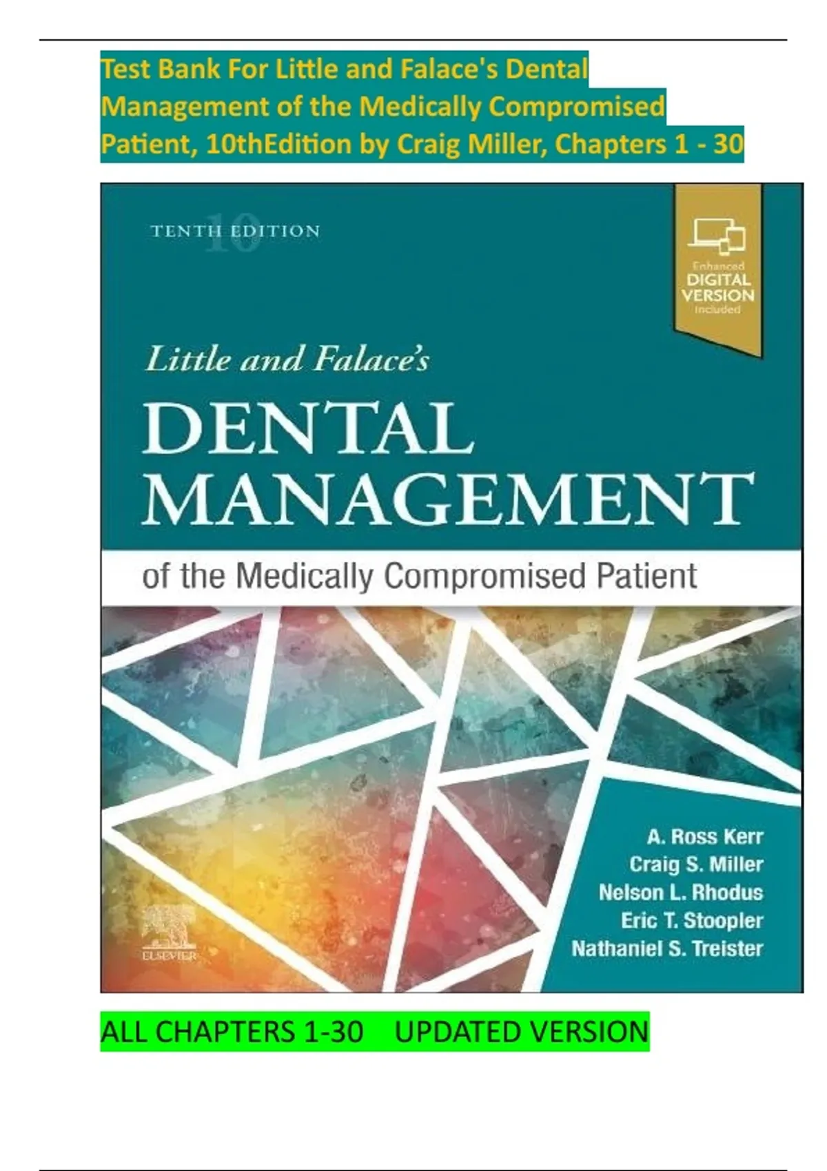 TEST BANK For Little and Falace's Dental Management of the Medically Compromised Patient, 10th Edition by Craig Miller,| ISBN: 9780323809498| Verified Chapter 1 - 30, All Chapters Complete Newest Version A+ GUIDE
