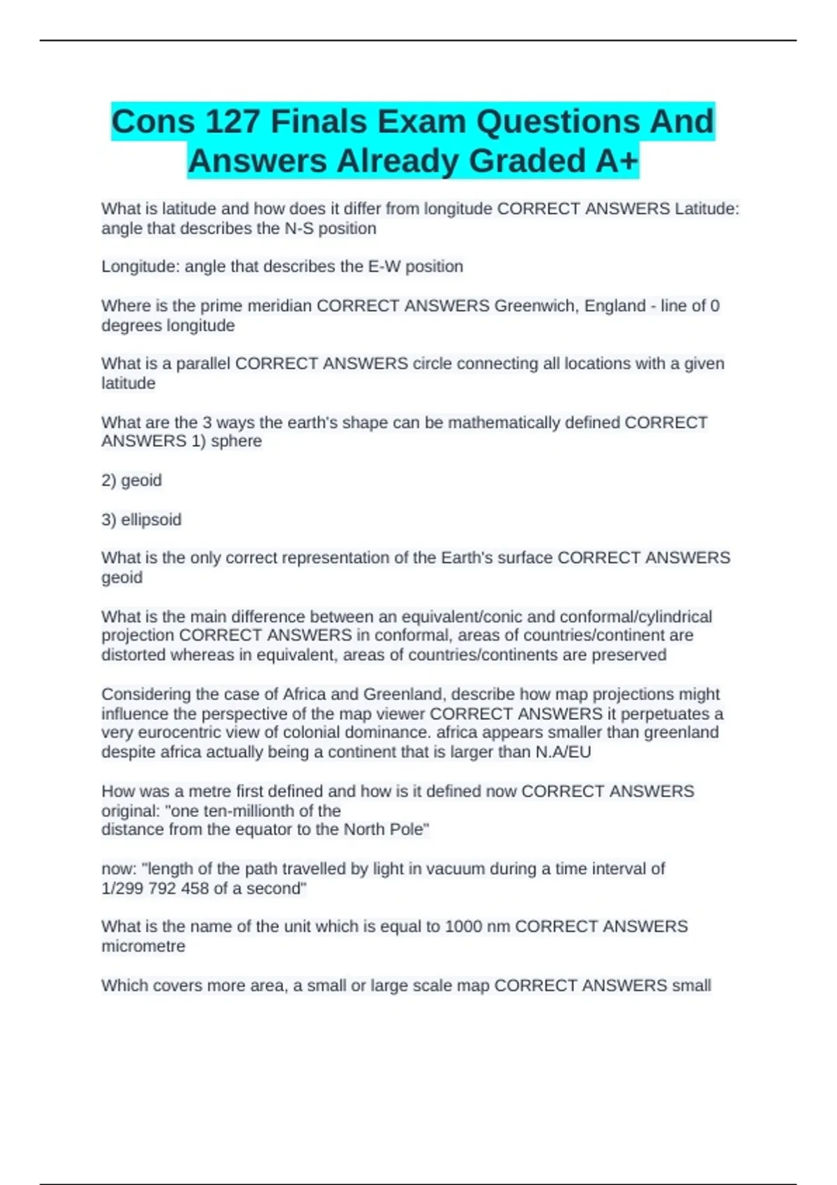 Cons 127 Finals Exam Questions And Answers Already Graded A+