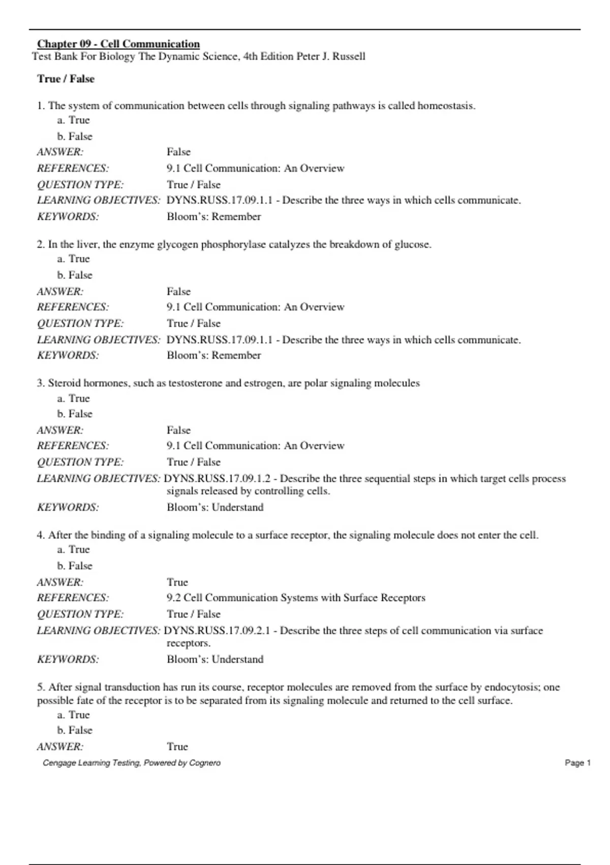 Test Bank For Biology The Dynamic Science, 4th Edition Peter J. Russell
