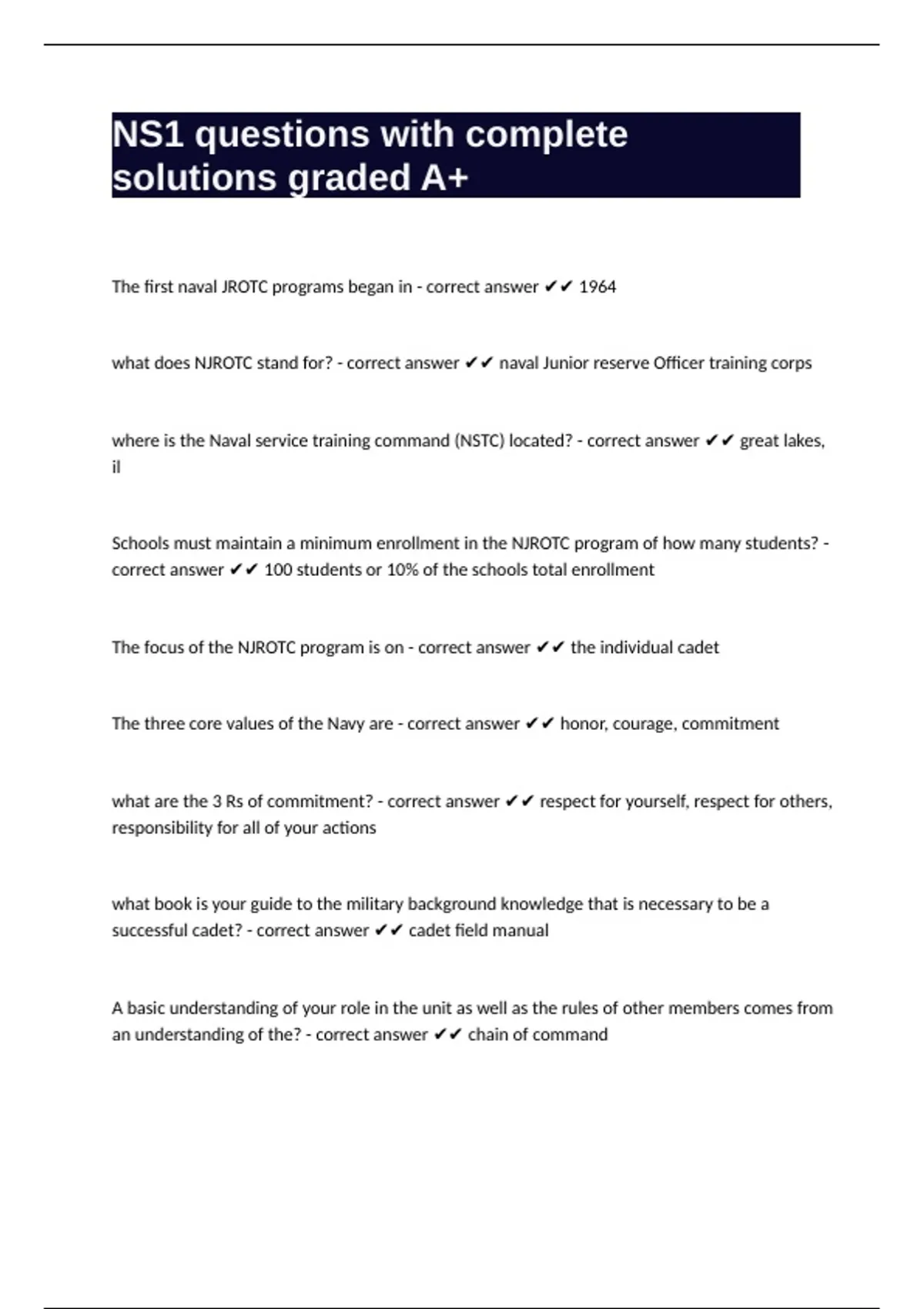 what does NJROTC stand for? - correct answer ✔✔ naval Junior reserve Officer training corps