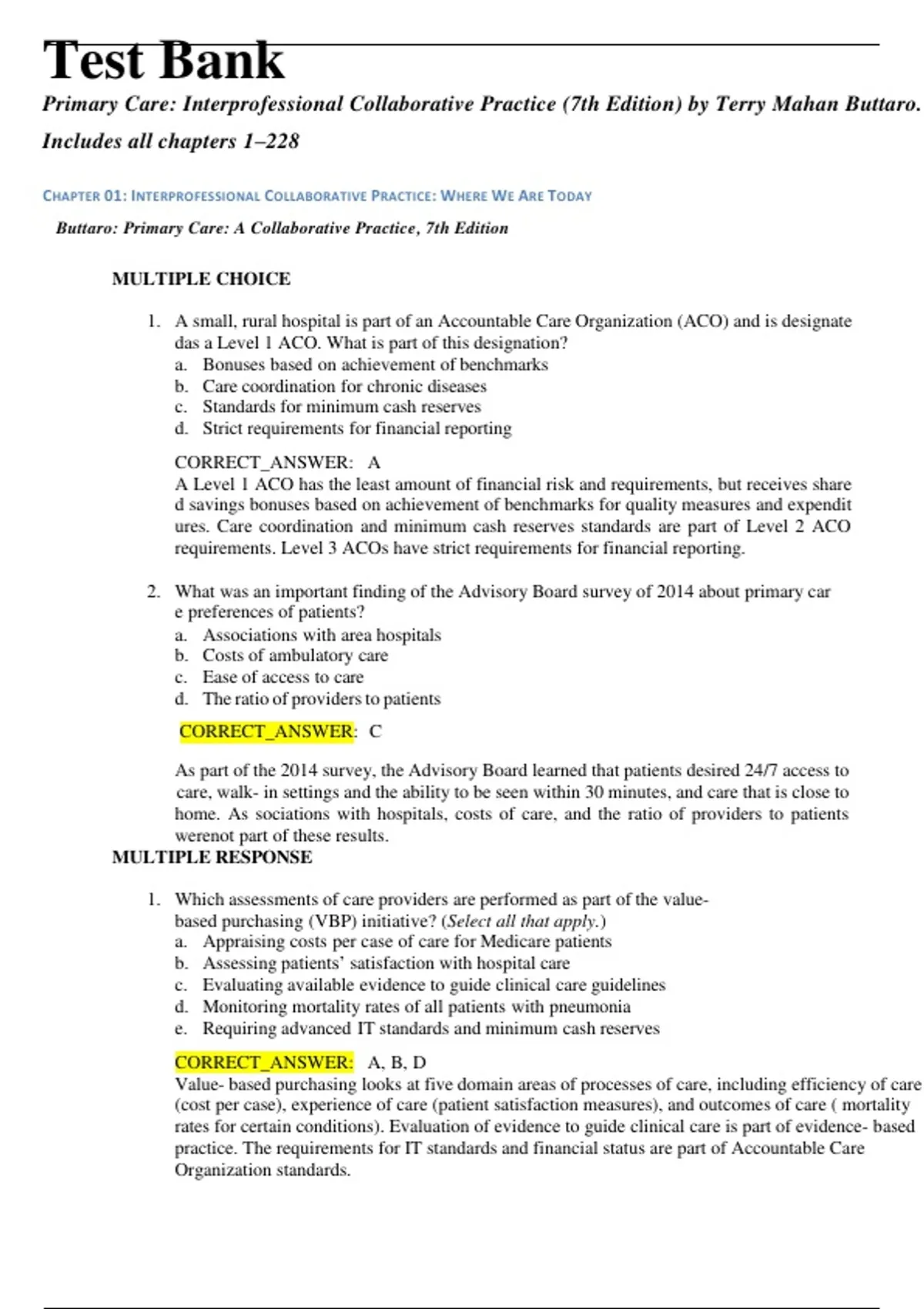 Access the Test Bank for Primary Care: Interprofessional Collaborative Practice, 7th Edition by Terry Mahan Buttaro — covering all chapters 1–228 with verified exam questions and detailed answers. This comprehensive resource helps nursing and healthcare students master primary care concepts, interprofessional collaboration, patient assessment, clinical decision-making, and evidence-based practice. Ideal for exam preparation, assignments, and professional development aligned with the 7th edition textbook.