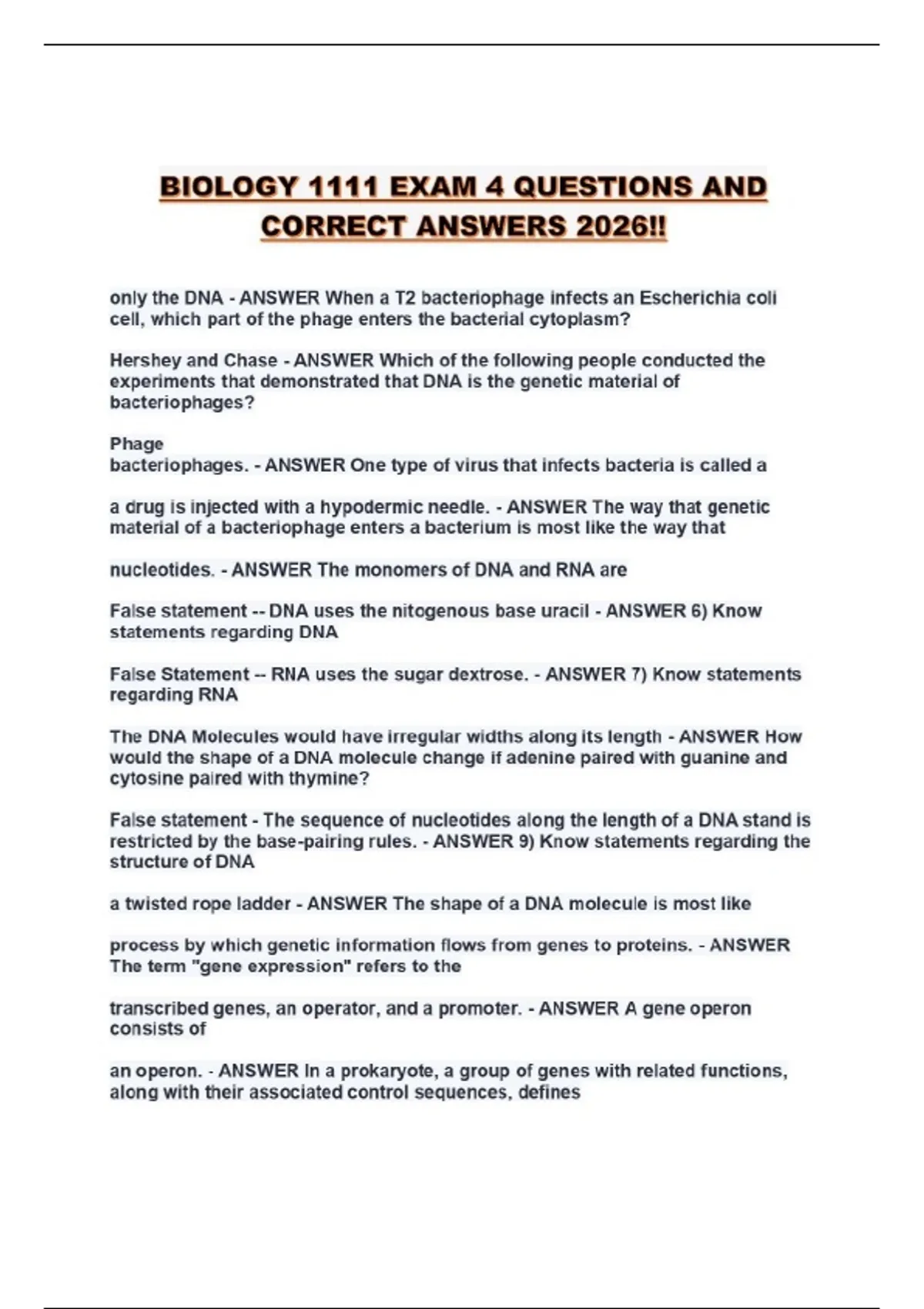 BIOLOGY 1111 EXAM 4 QUESTIONS AND CORRECT ANSWERS 2026!!...