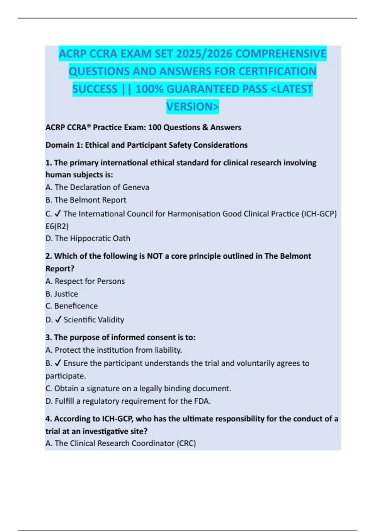 ACRP CCRA EXAM SET 2025/2026 COMPREHENSIVE
