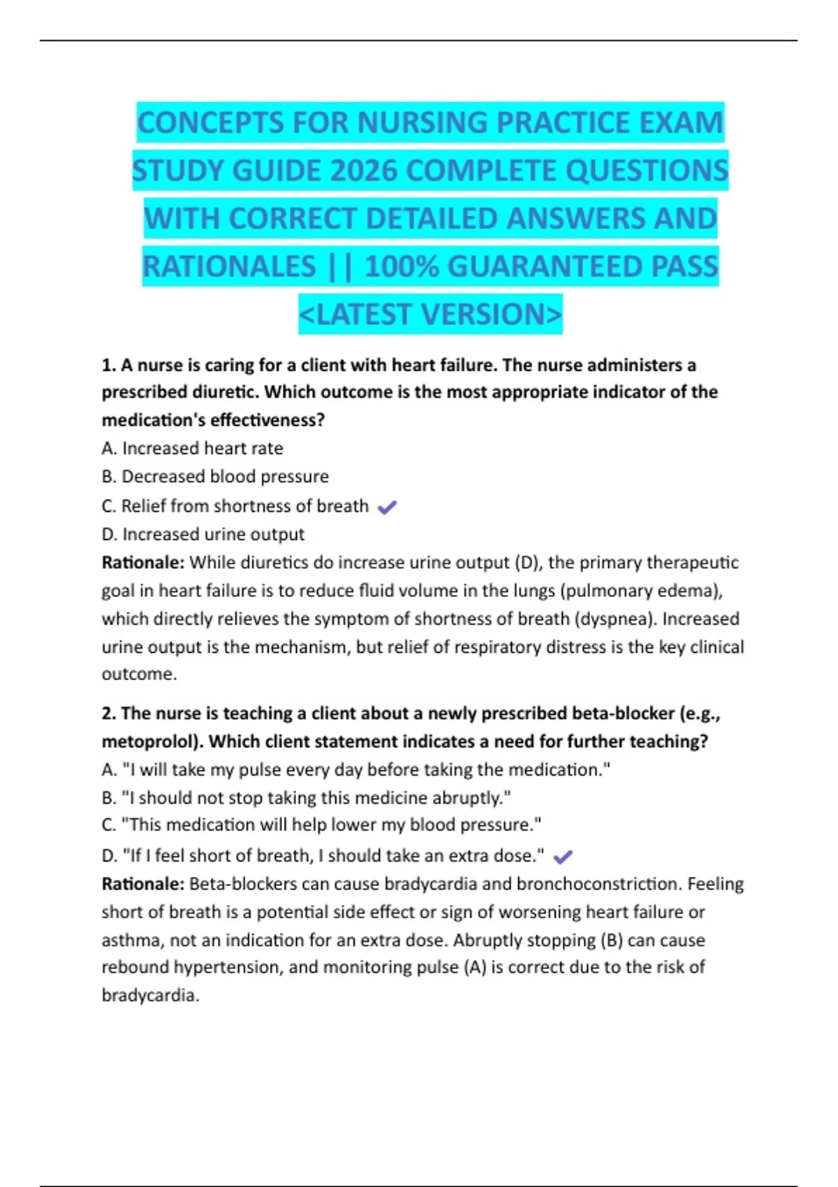 CONCEPTS FOR NURSING PRACTICE EXAM