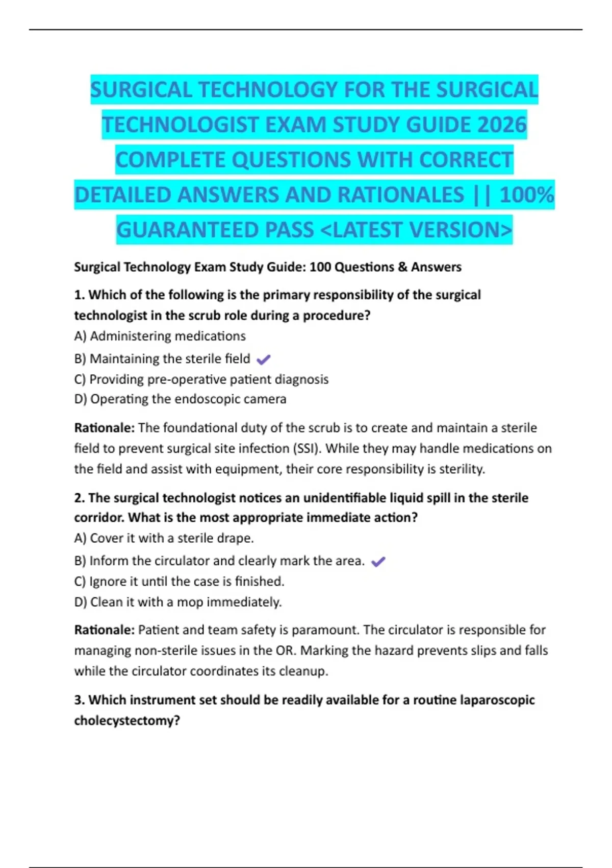 Surgical Technology Exam Study Guide: 100 Questions & Answers