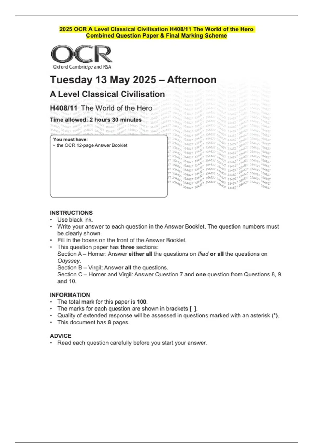 Section A – Homer: Answer either all the questions on Iliad or all the questions on