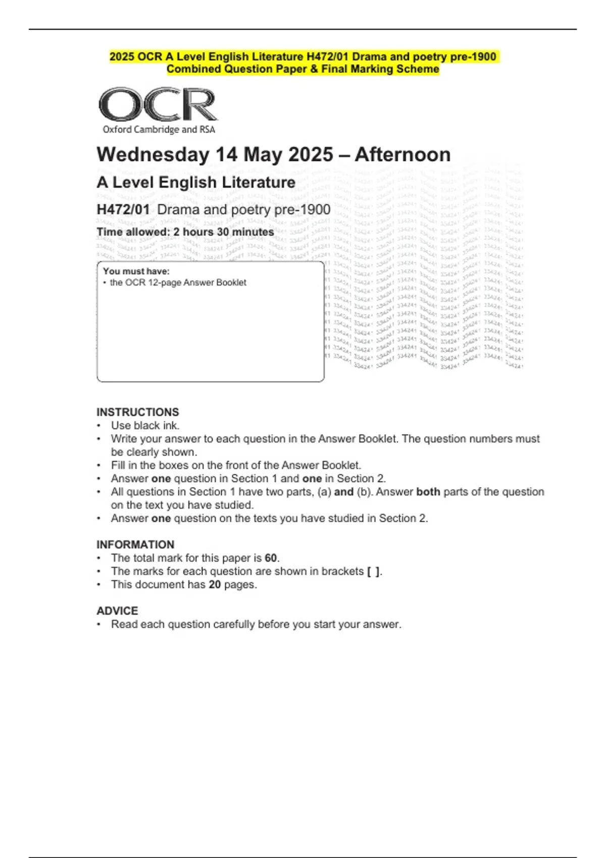 • the OCR 12-page Answer Booklet