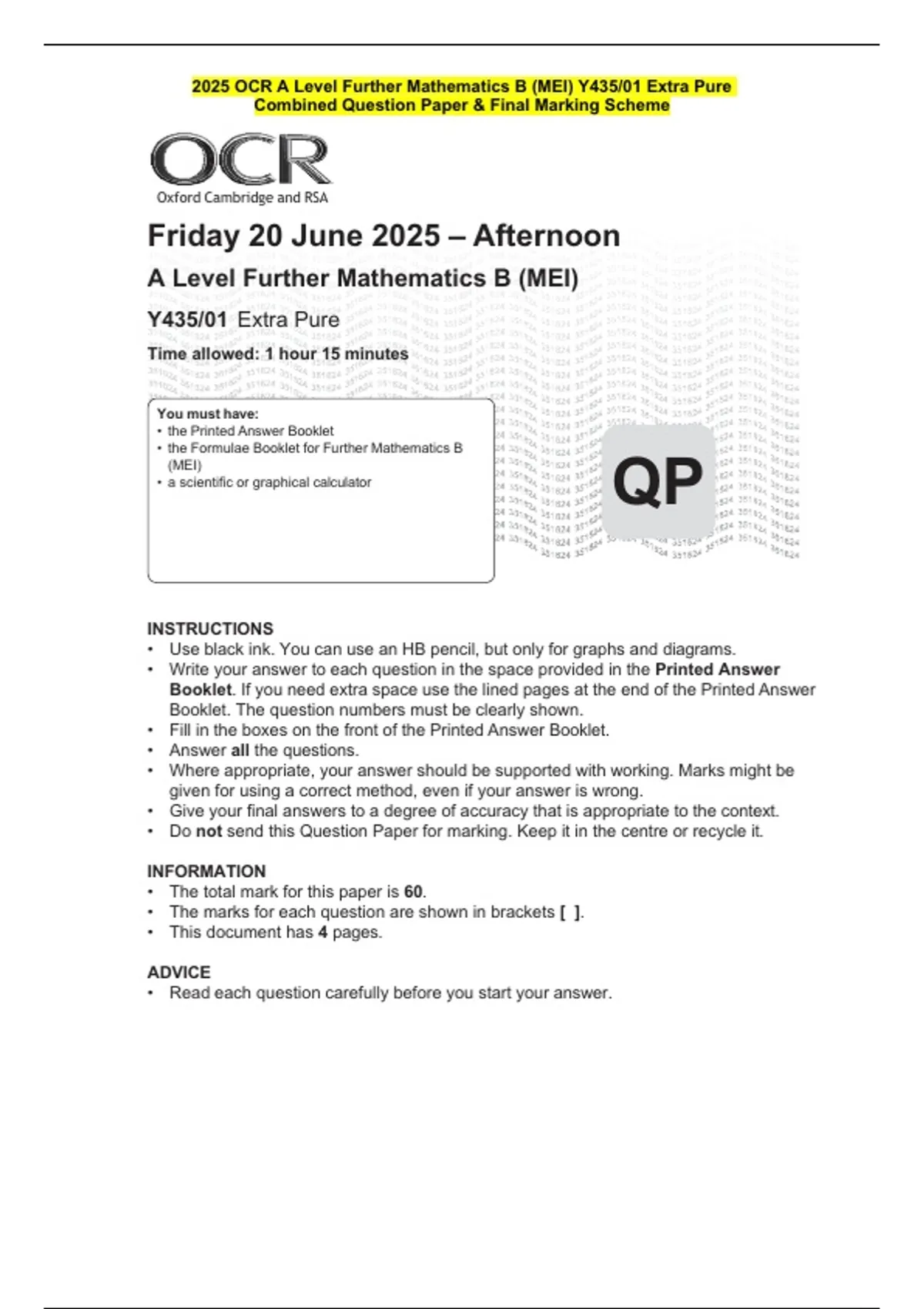 • The total mark for this paper is 60.