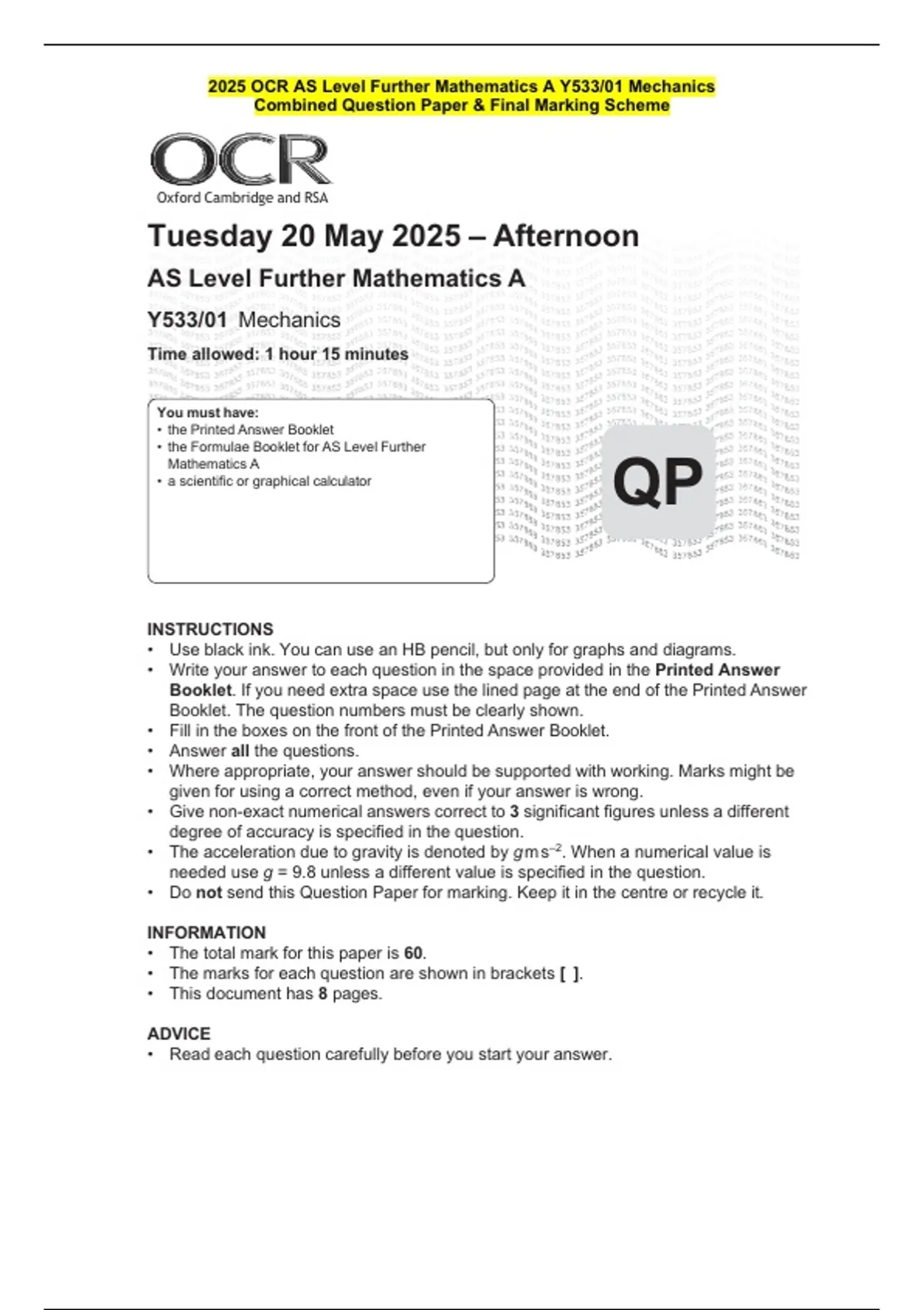 Y533/01 Mechanics