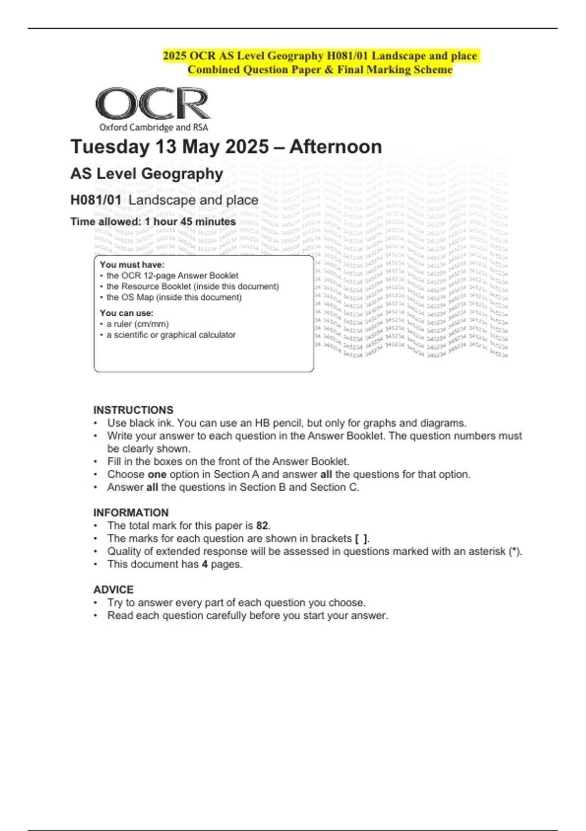 2025 OCR AS Level Geography H081/01 Landscape and place Combined Question Paper & Final Marking Scheme