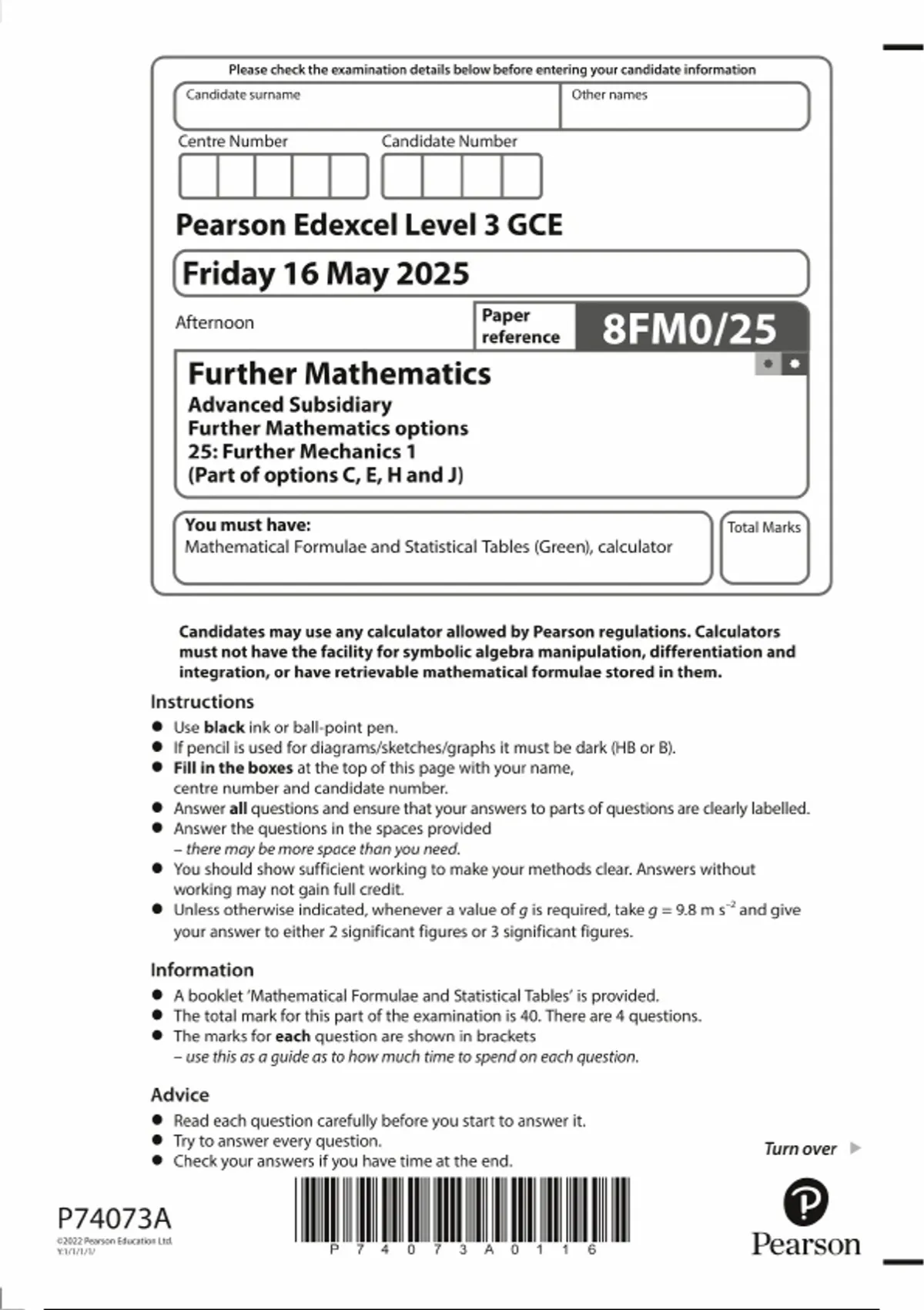 Pearson Edexcel Level 3 GCE Further Mathematics