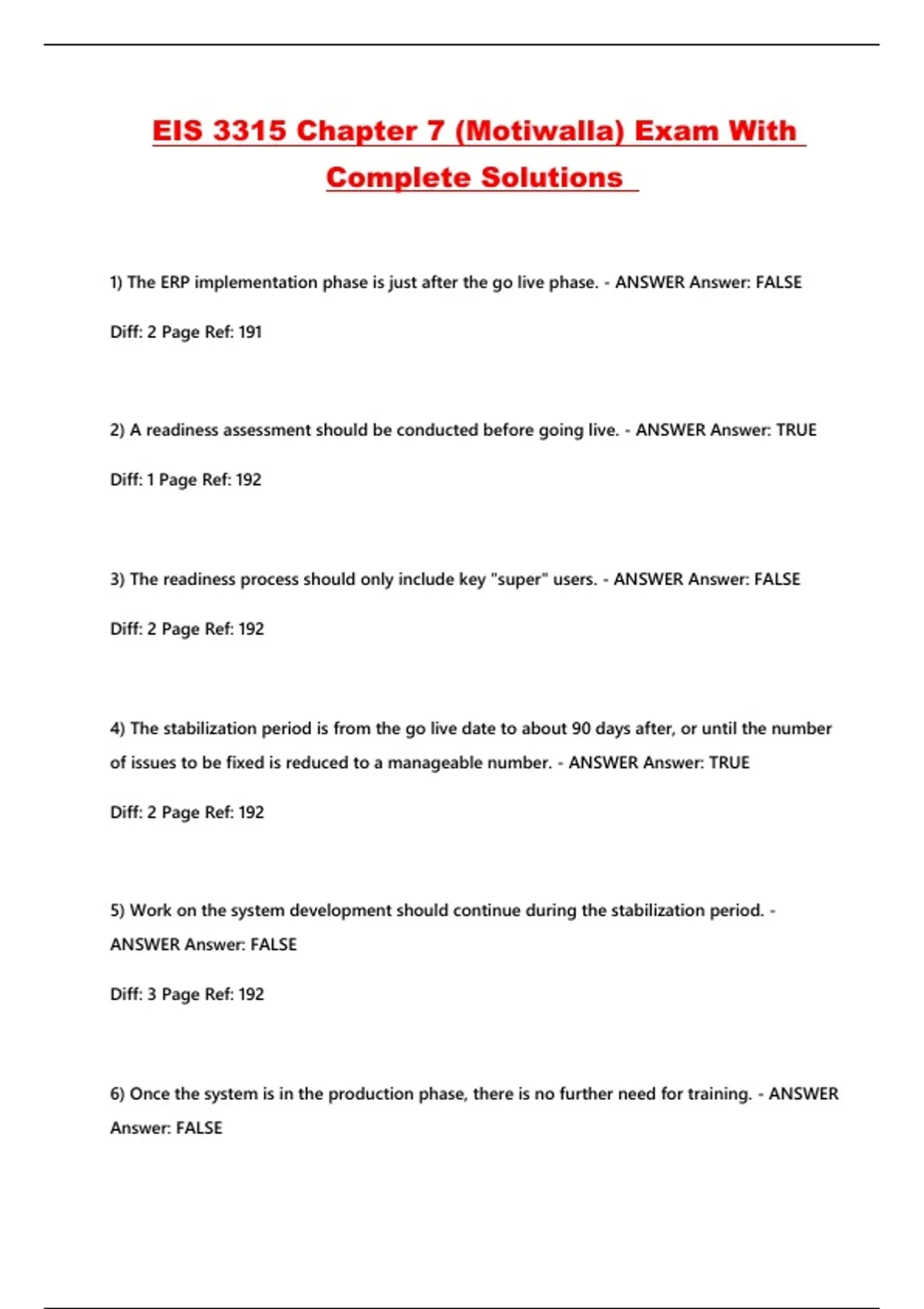 EIS 3315 Chapter 7 (Motiwalla) Exam With Complete Solutions ...