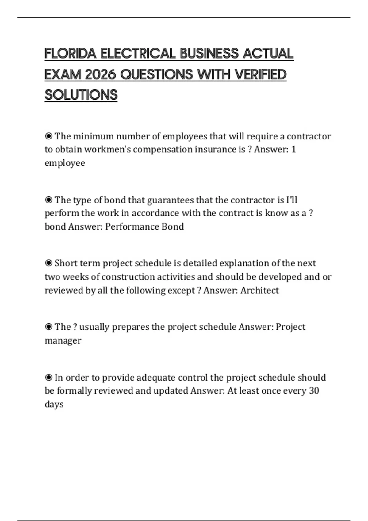 FLORIDA ELECTRICAL BUSINESS ACTUAL EXAM 2026 QUESTIONS WITH VERIFIED SOLUTIONS