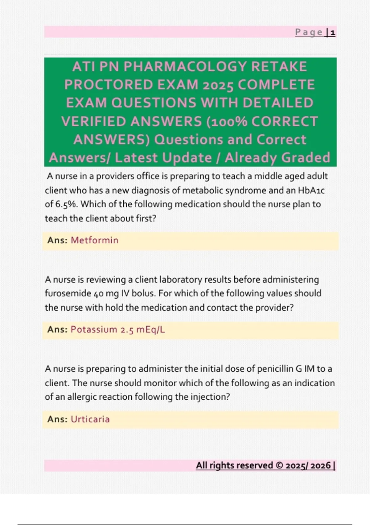 ATI PN PHARMACOLOGY RETAKE