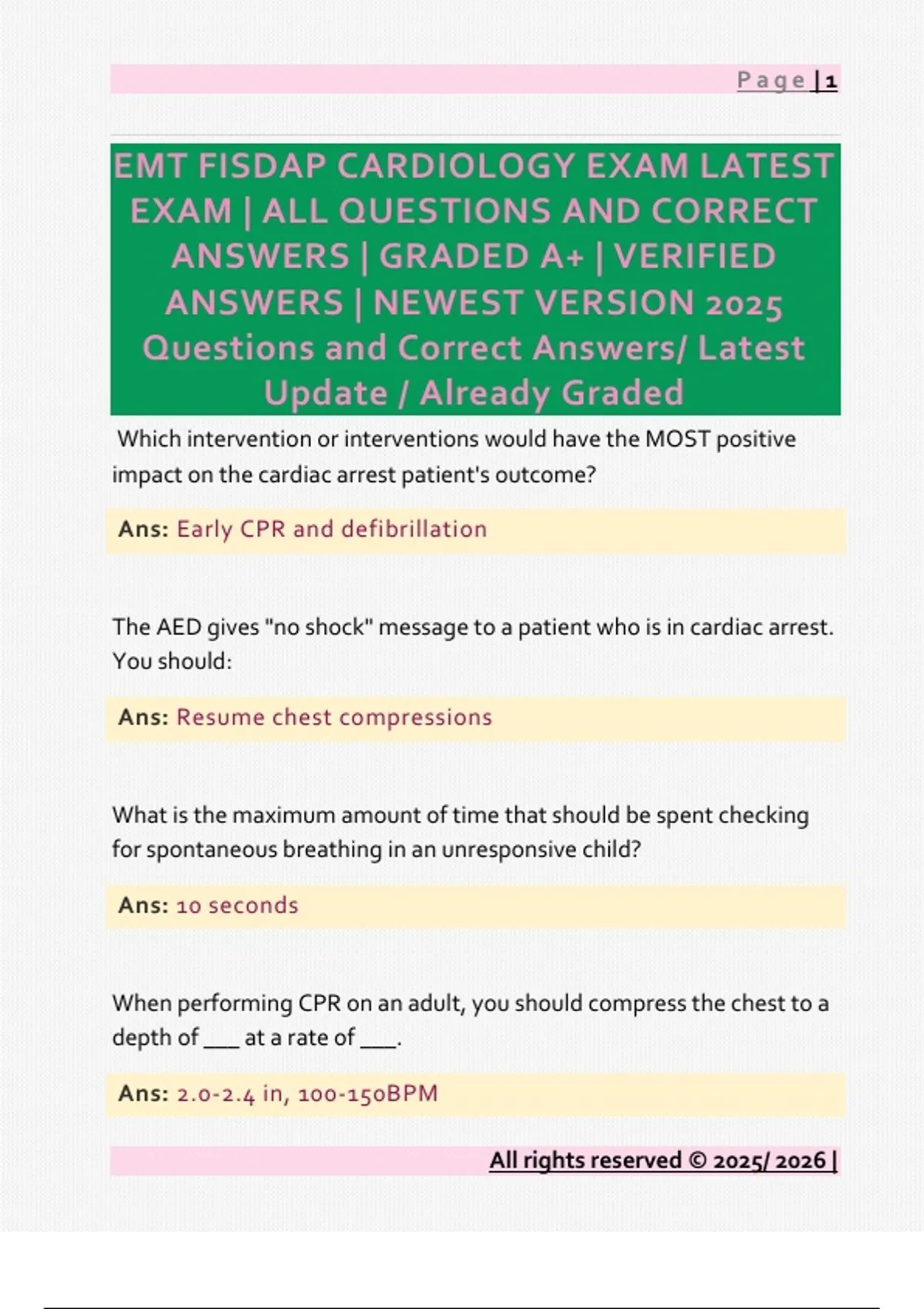 EMT FISDAP CARDIOLOGY EXAM LATEST