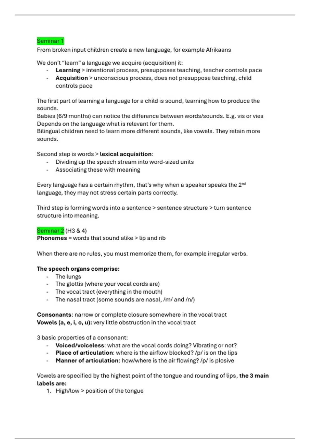 - Acquisition > unconscious process, does not presuppose teaching, child