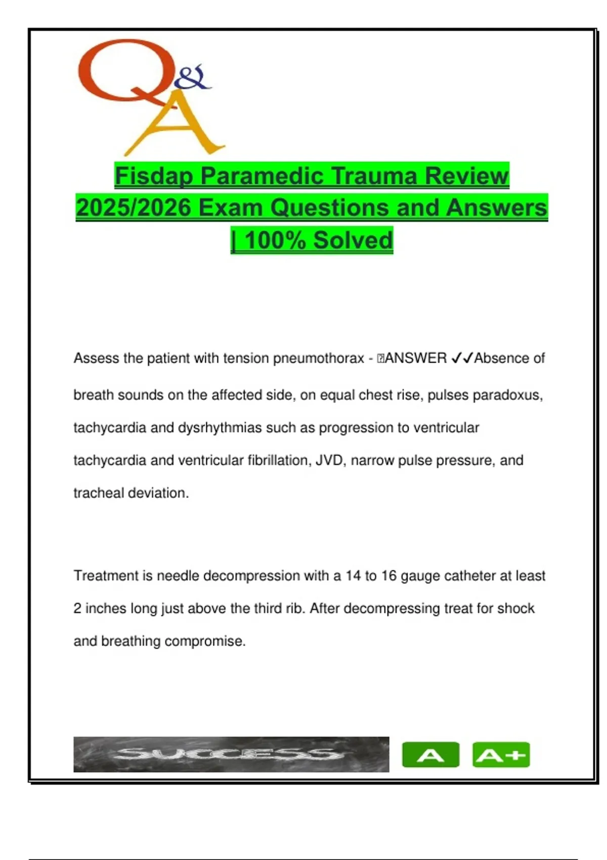 Treatment is needle decompression with a 14 to 16 gauge catheter at least