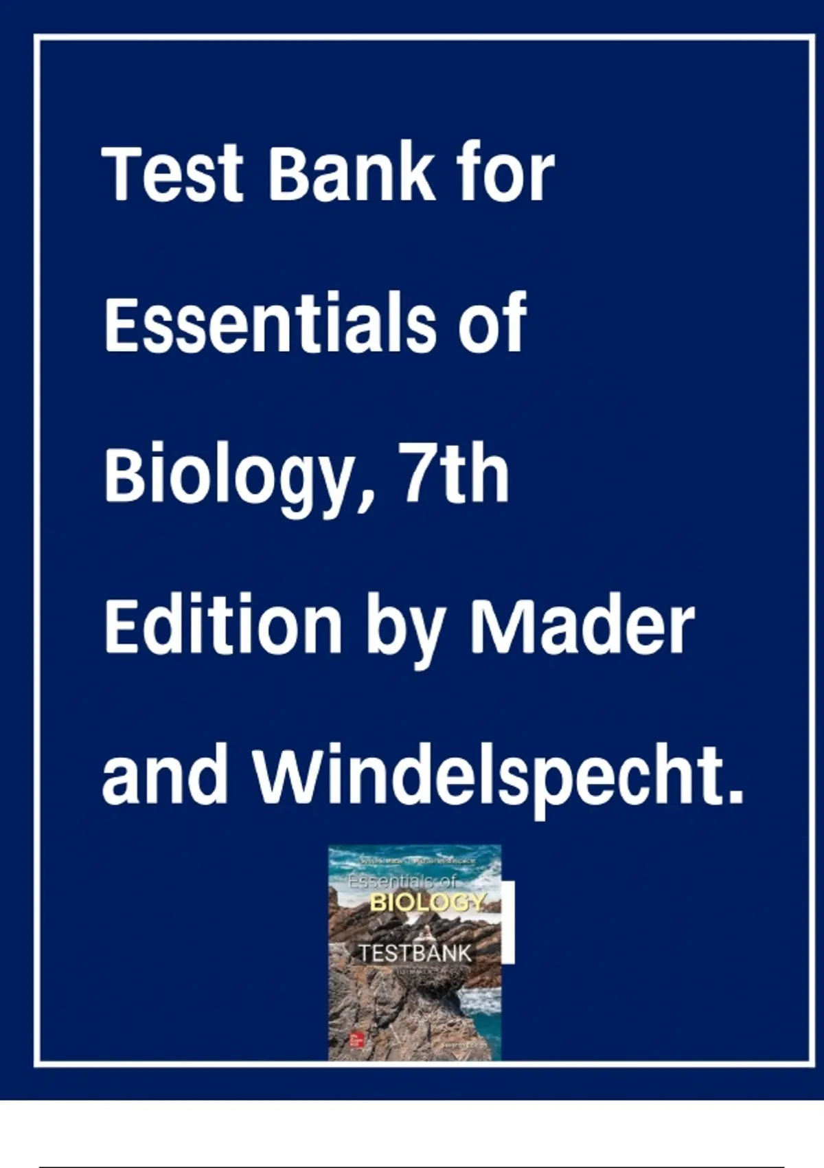 Test Bank for Essentials of Biology, 7th Edition by Mader and Windelspecht.|Questions and Answers .|All Chapters 1-32 covered.