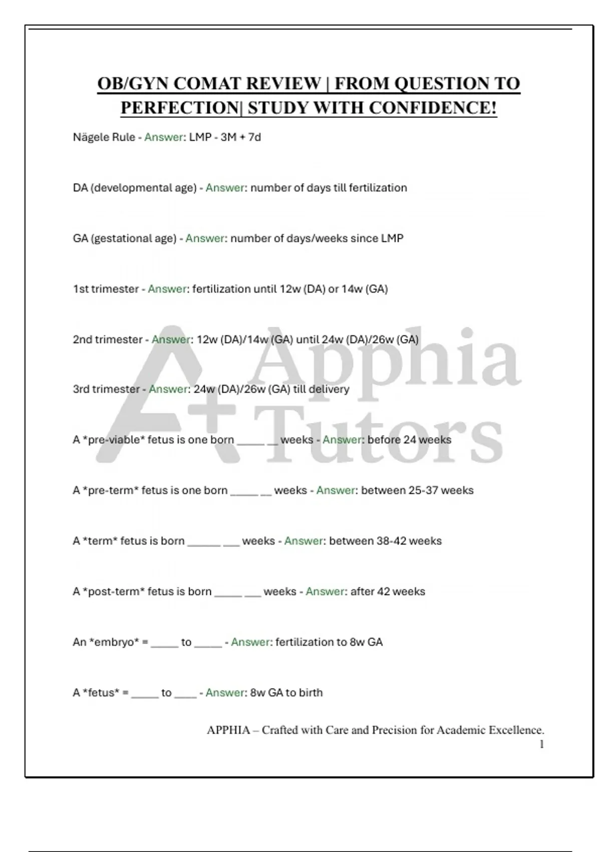 GA (gestational age) - Answer: number of days/weeks since LMP