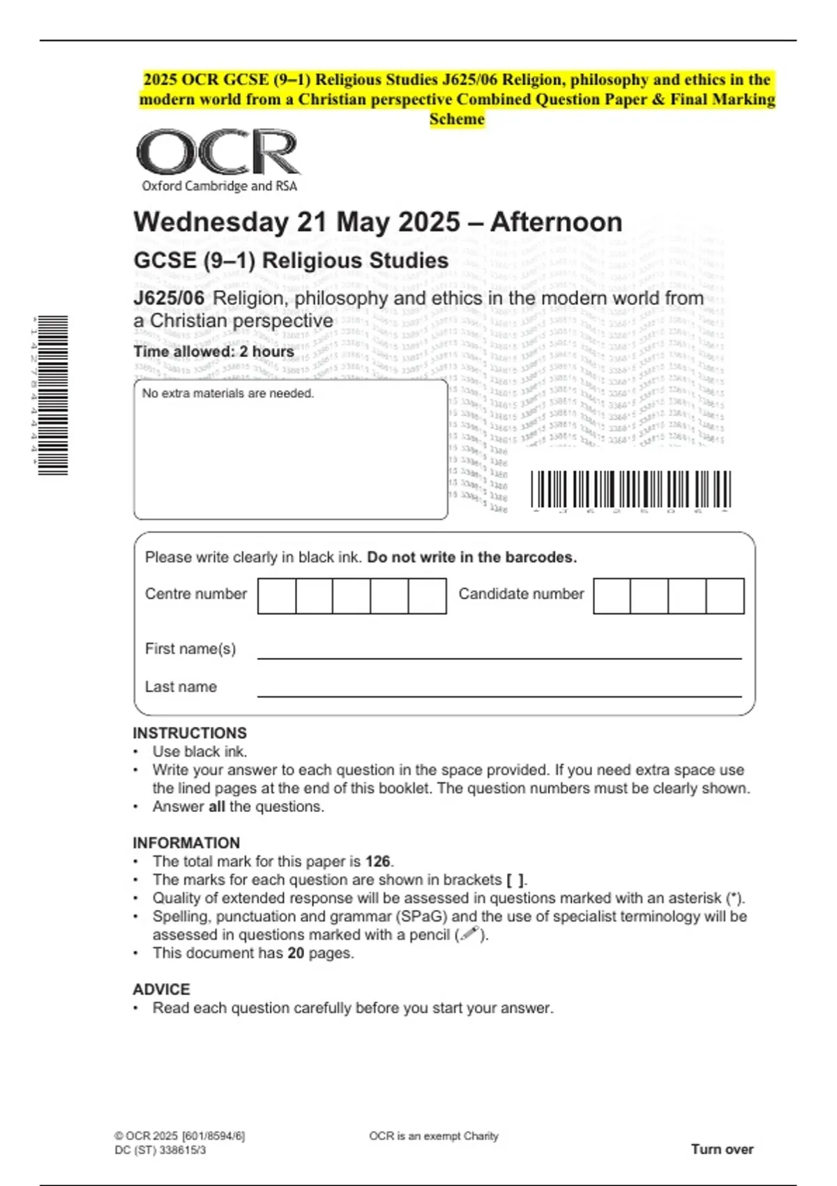 2025 OCR GCSE (9–1) Religious Studies J625/06 Religion, philosophy and ethics in the modern world from a Christian perspective Combined Question Paper & Final Marking Scheme