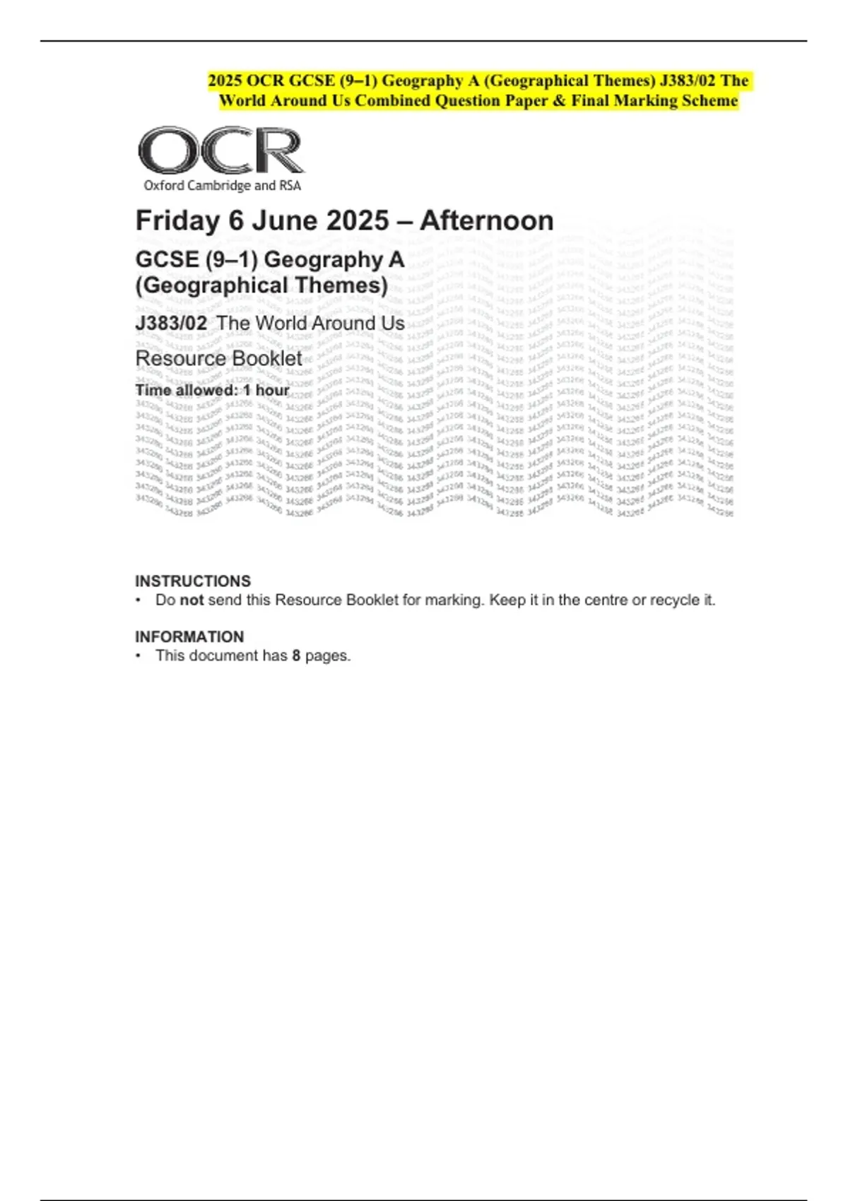 2025 OCR GCSE (9–1) Geography A (Geographical Themes) J383/02 The World Around Us Combined Question Paper & Final Marking Scheme