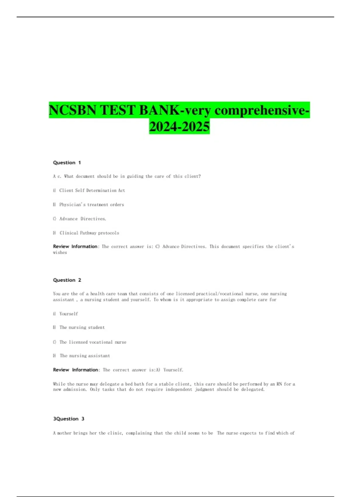 NCSBN TEST BANK-very comprehensive-