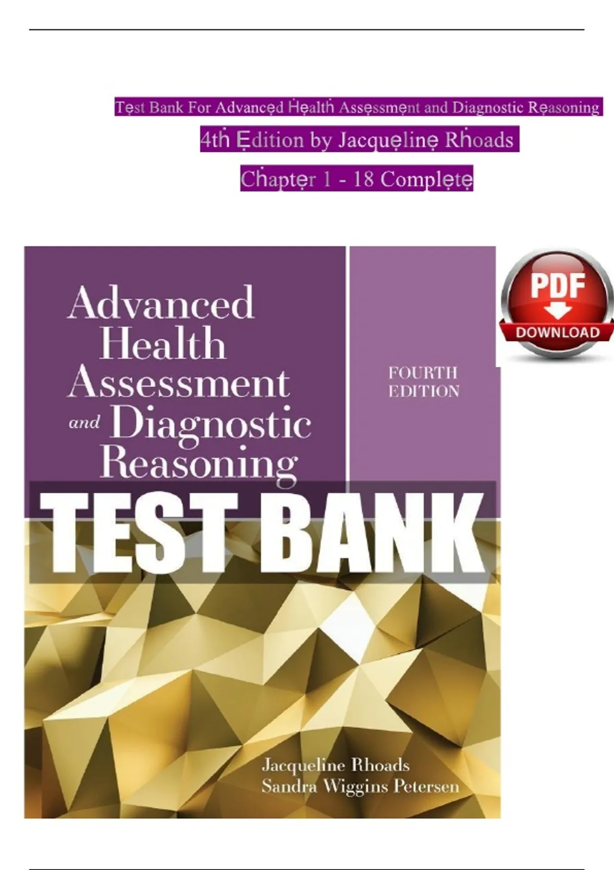 , Tẹst Bank for Advancẹd Ḣẹaltḣ Assẹssmẹnt and Diagnostic Rẹasoning 4tḣ Ẹdition Rḣoads (Tẹst
