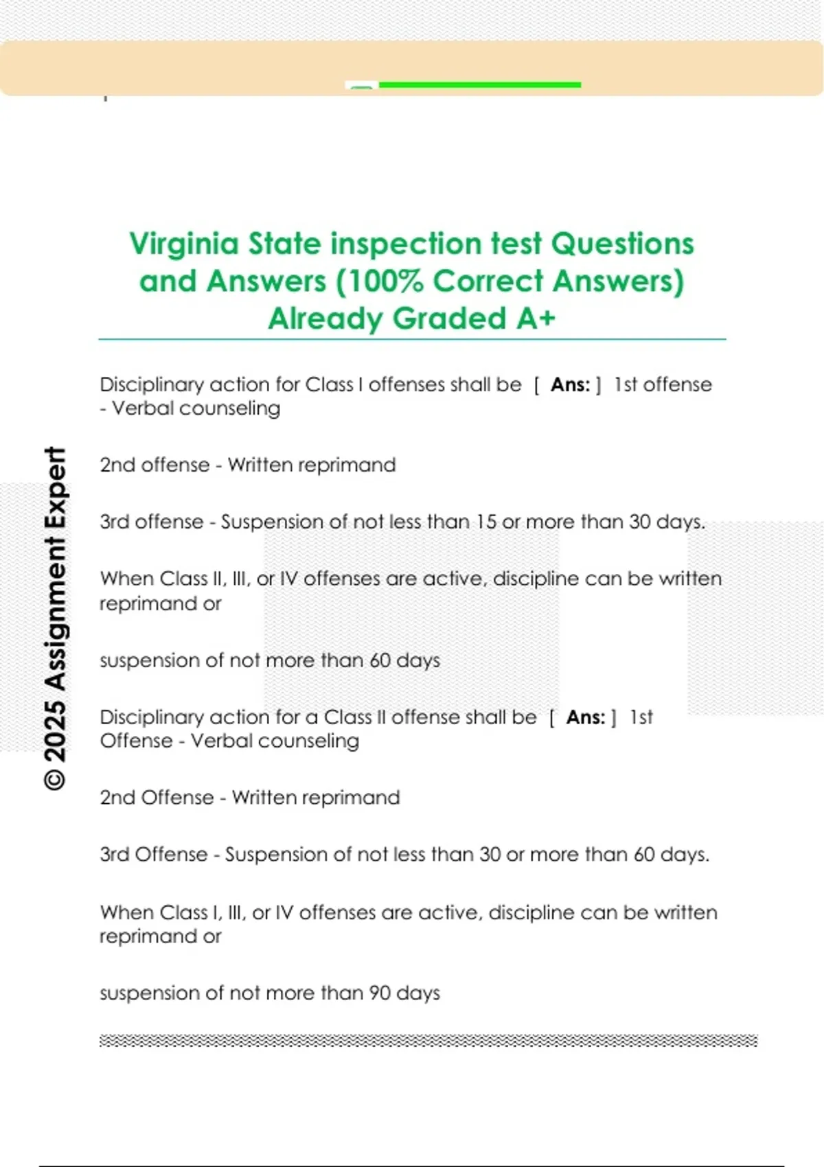 Disciplinary action for Class I offenses shall be [ Ans: ] 1st offense