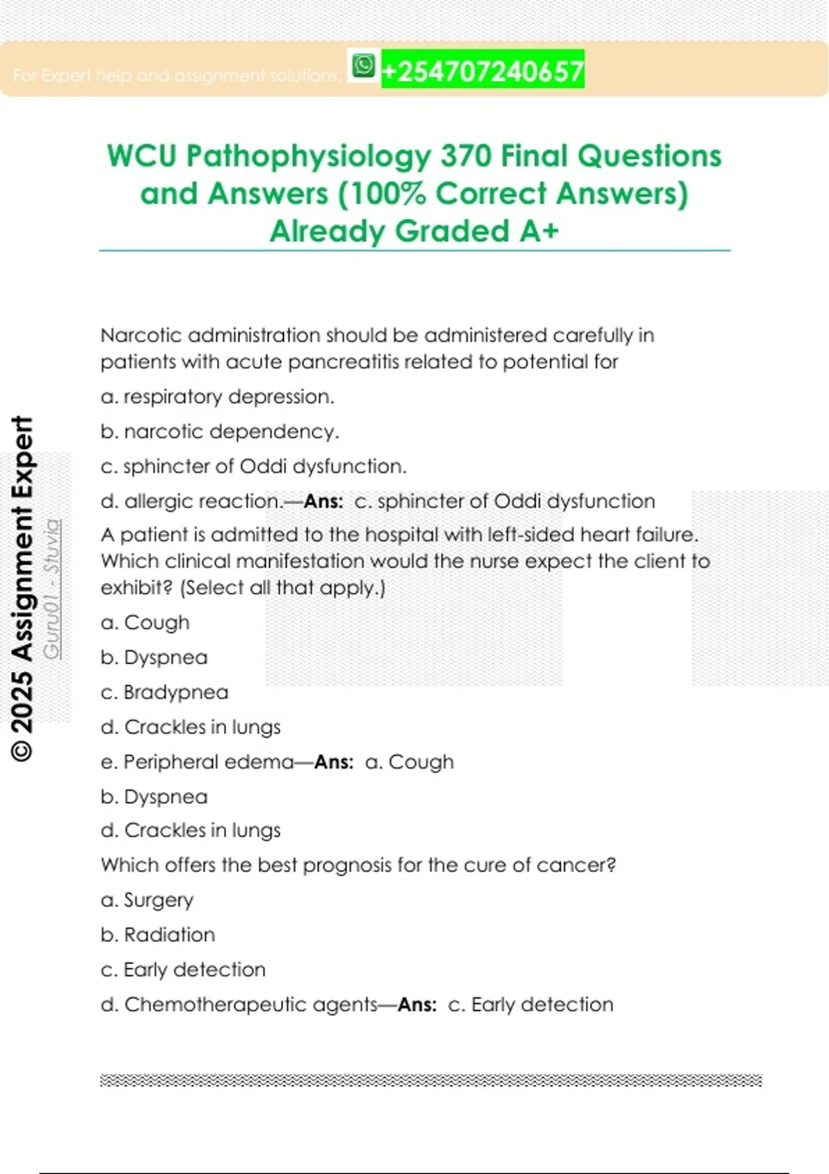 WCU Pathophysiology 370 Final Questions and Answers (100% Correct Answers) Already Graded A+