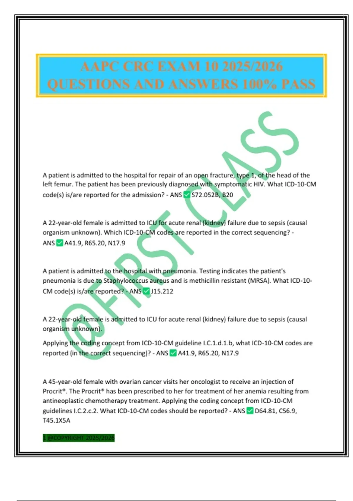 AAPC CRC EXAM 10 2025/2026 QUESTIONS AND ANSWERS 100% PASS