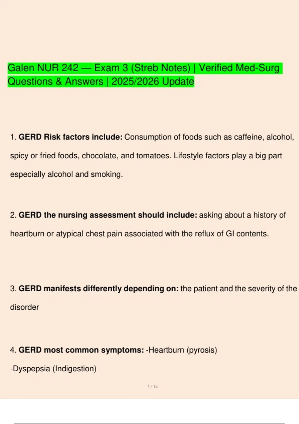 2. GERD the nursing assessment should include: asking about a history of