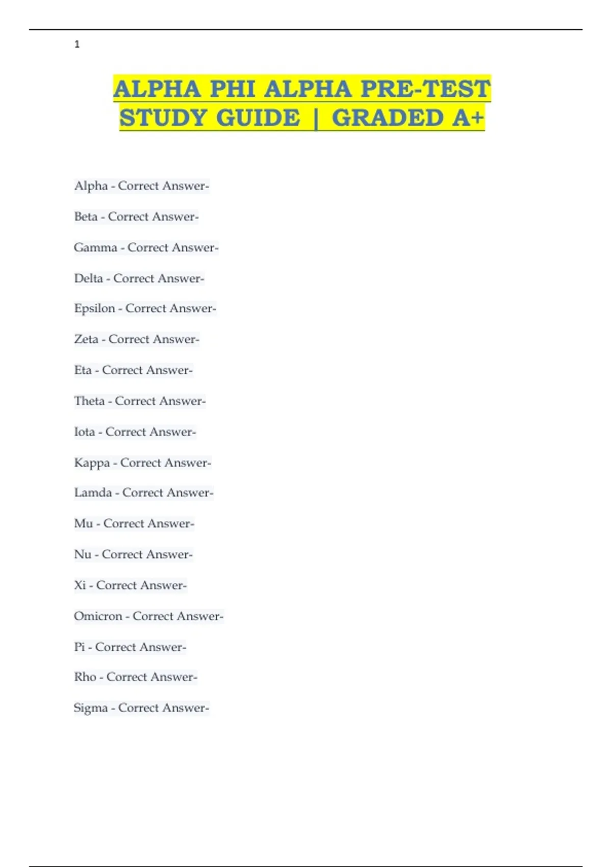 ALPHA PHI ALPHA PRE-TEST STUDY GUIDE | GRADED A+