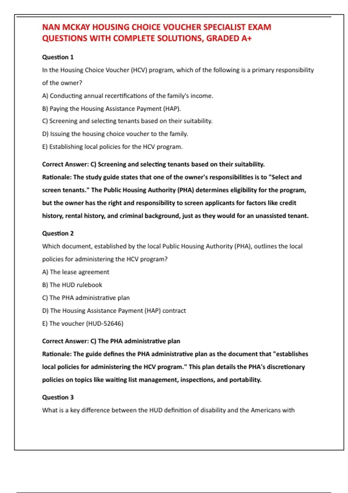 NAN MCKAY HOUSING CHOICE VOUCHER SPECIALIST EXAM