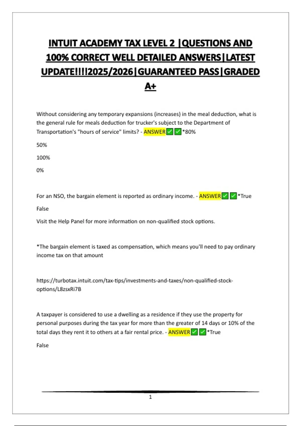 INTUIT ACADEMY TAX LEVEL 2 |QUESTIONS AND 100% CORRECT WELL DETAILED ANSWERS|LATEST UPDATE!!!!2025/2026|GUARANTEED PASS|GRADED A+