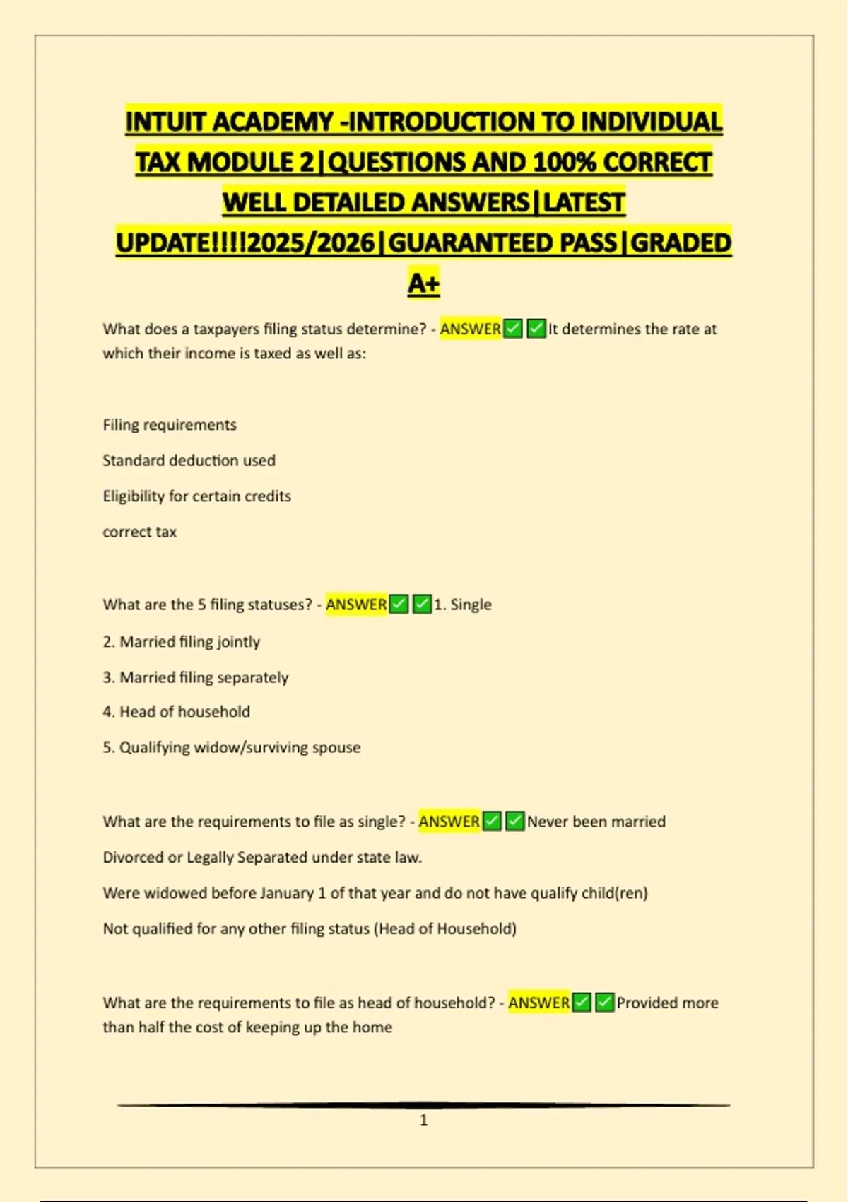 INTUIT ACADEMY -INTRODUCTION TO INDIVIDUAL TAX MODULE 2|QUESTIONS AND 100% CORRECT WELL DETAILED ANSWERS|LATEST UPDATE!!!!2025/2026|GUARANTEED PASS|GRADED A+
