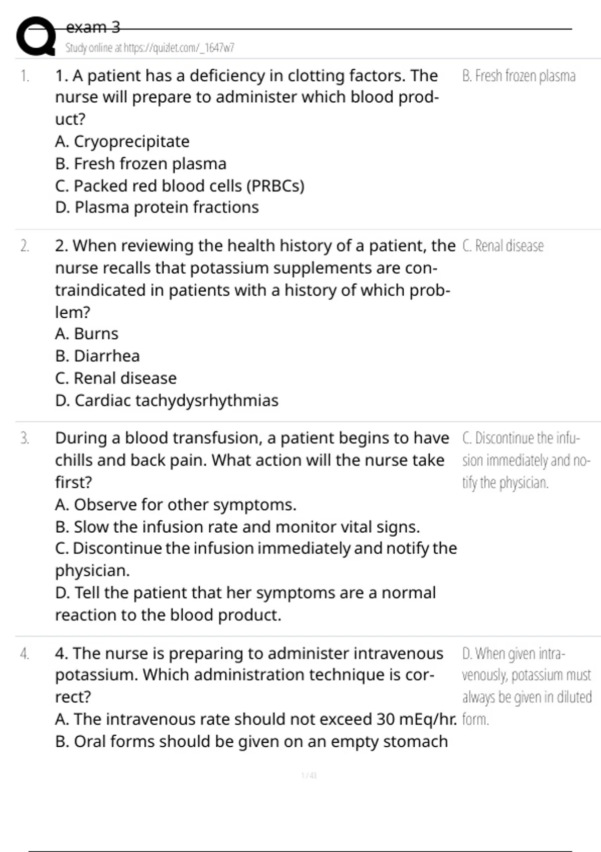 3. During a blood transfusion, a patient begins to have C. Discontinue the infu-