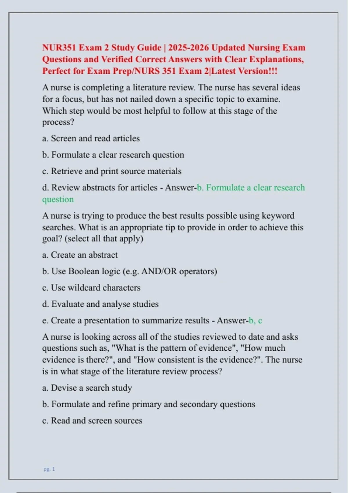 d. Review abstracts for articles - Answer-b. Formulate a clear research