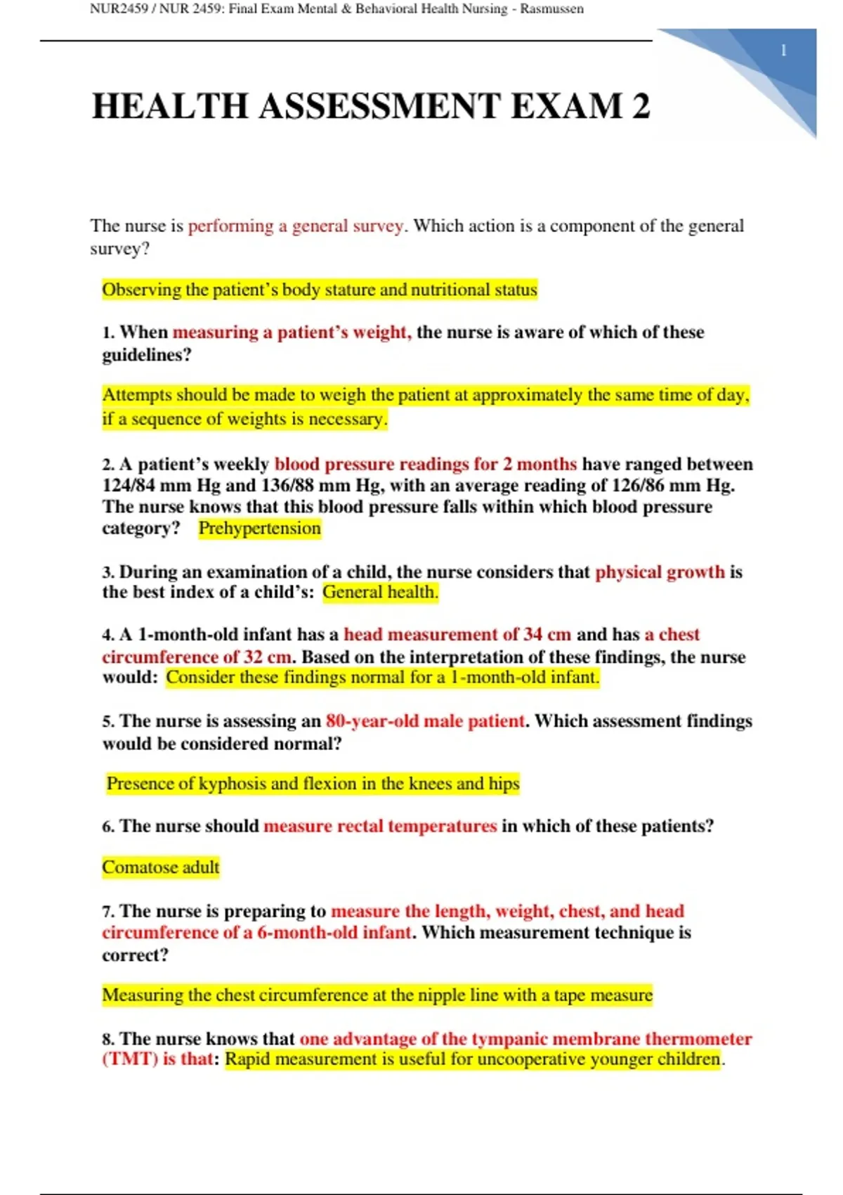 2_________ NUR2459 / NUR 2459: FINAL EXAM MENTAL & BEHAVIORAL HEALTH NURSING – RASMUSSEN!______________#