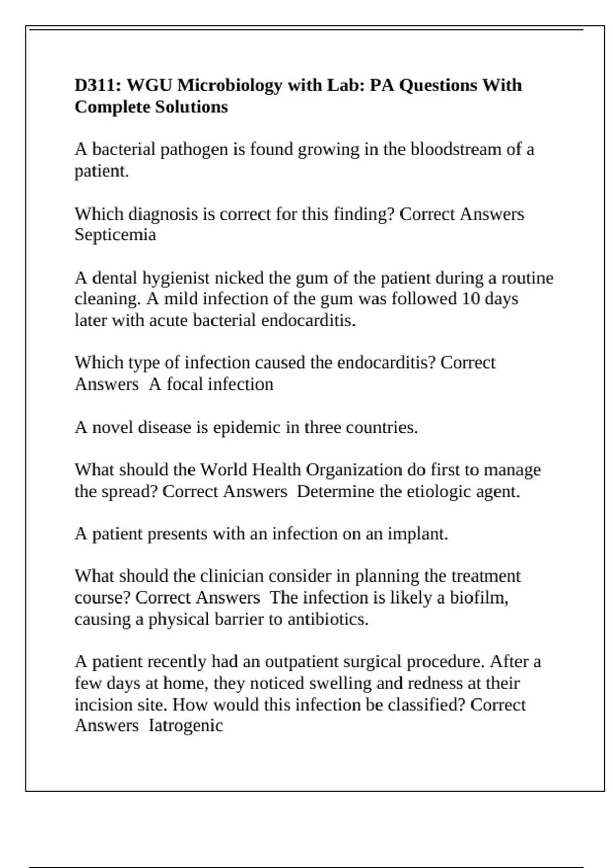 D311: WGU Microbiology with Lab: PA Questions With Complete Solutions