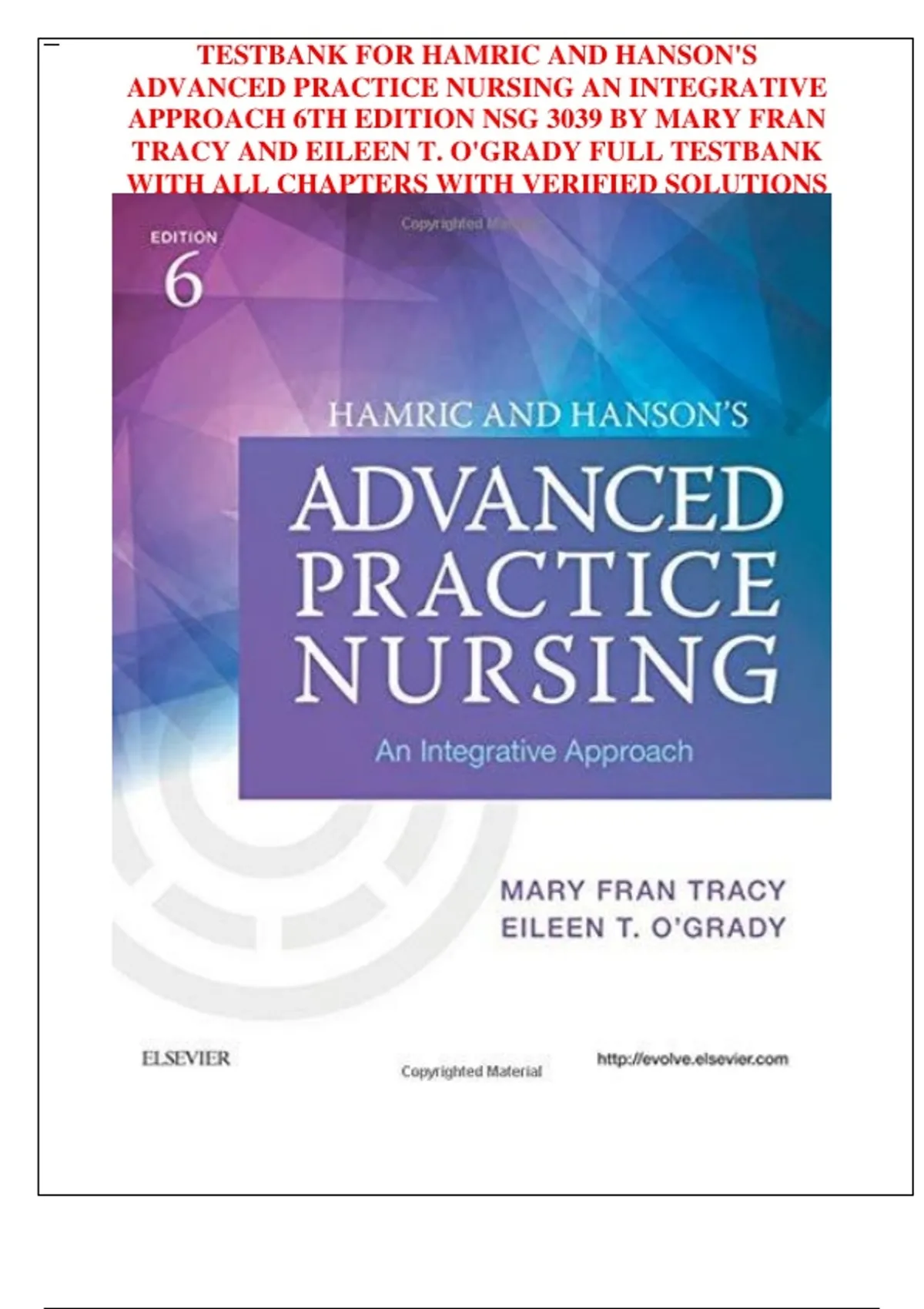 HAMRIC AND HANSON'S ADVANCED PRACTICE NURSING AN INTEGRATIVE APPROACH 6TH EDITION NSG 3039 BY MARY FRAN TRACY AND EILEEN T. O'GRADY FULL TESTBANK WITH ALL CHAPTERS WITH VERIFIED SOLUTIONS