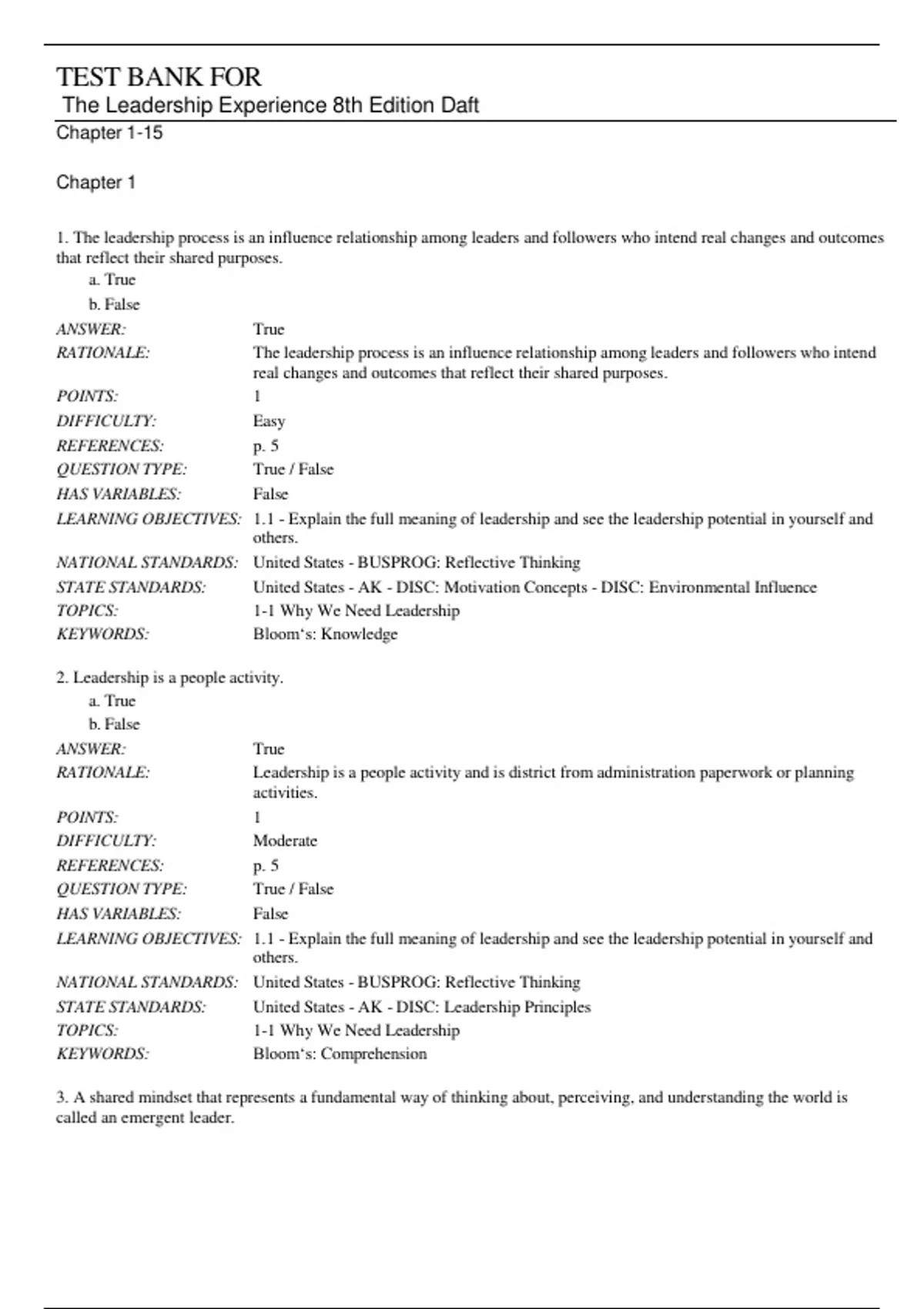 LEARNING OBJECTIVES: 1-3 - Summarize the fundamental differences between leadership and management.