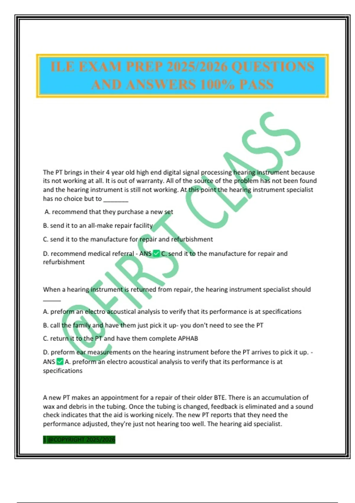 ILE EXAM PREP 2025/2026 QUESTIONS
