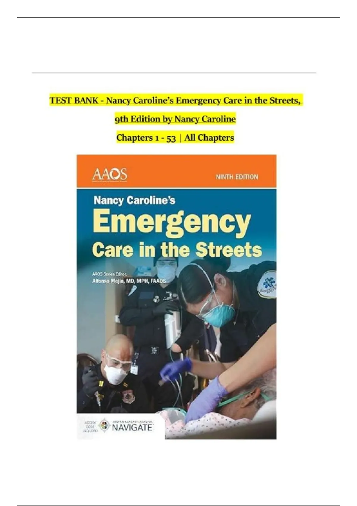 TEST BANK For Nancy Caroline’s Emergency Care in the Streets, 9th Edition by Nancy Caroline, Verified Chapters 1 - 53, Complete Newest Version