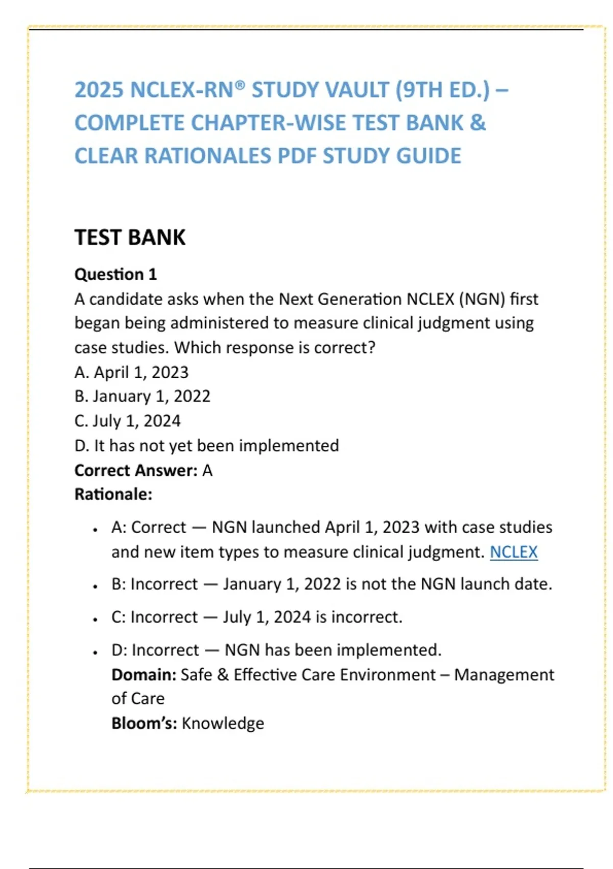 Targeted nursing test banks with textbook-aligned questions and NCLEX-style MCQs built for nursing exams and assessment success. Practical, high-yield nursing study resources that improve accuracy, confidence, and outcomes. Designed to help you study smarter and pass with confidence.