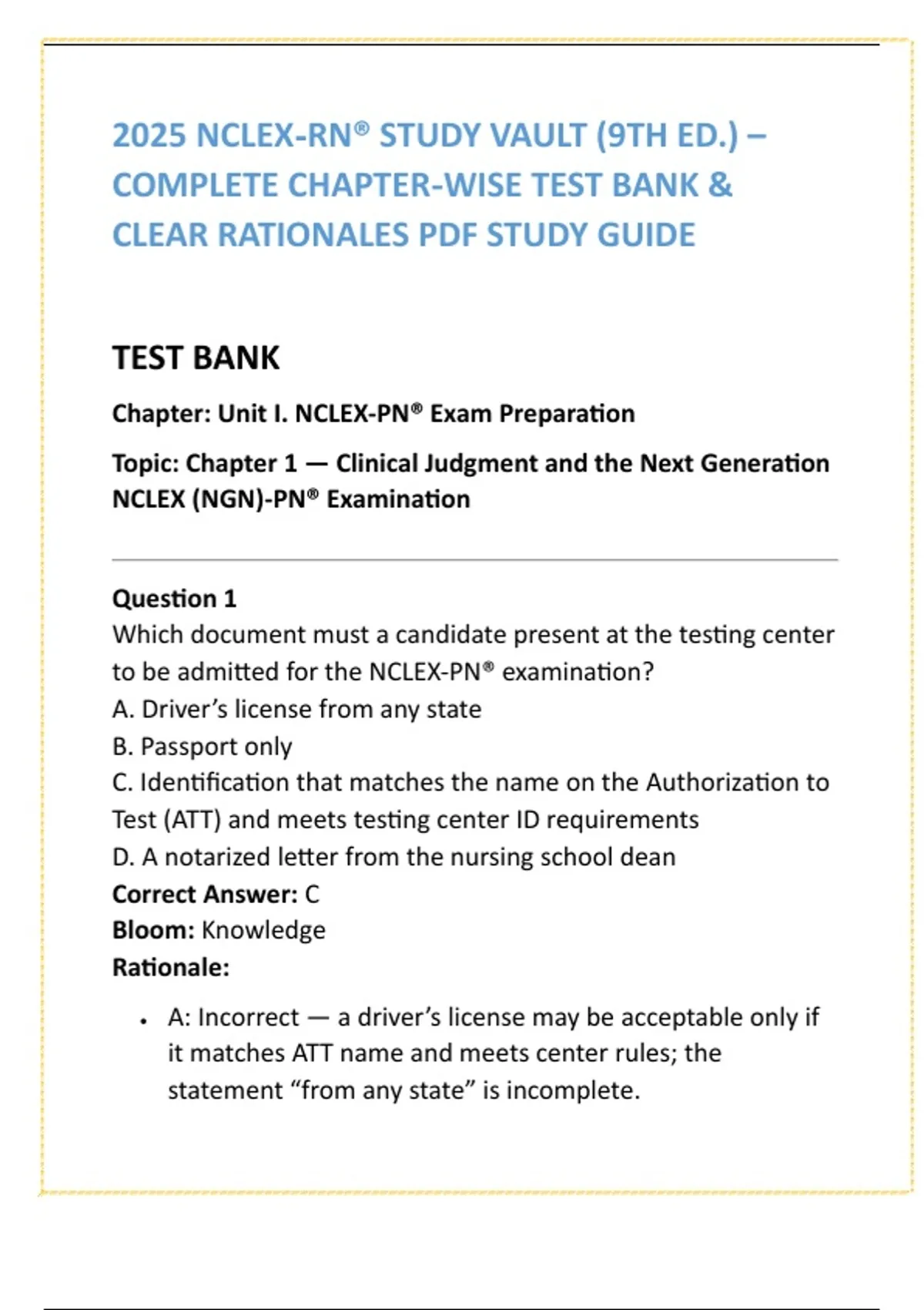 • C: Correct — testing centers require ID that exactly