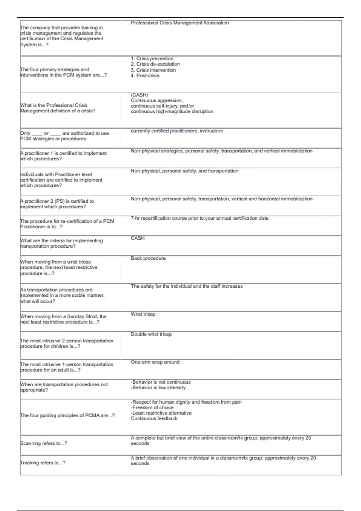 A practitioner 2 (PS) is certified to Non-physical, personal safety, transportation, vertical and horizontal immobilization