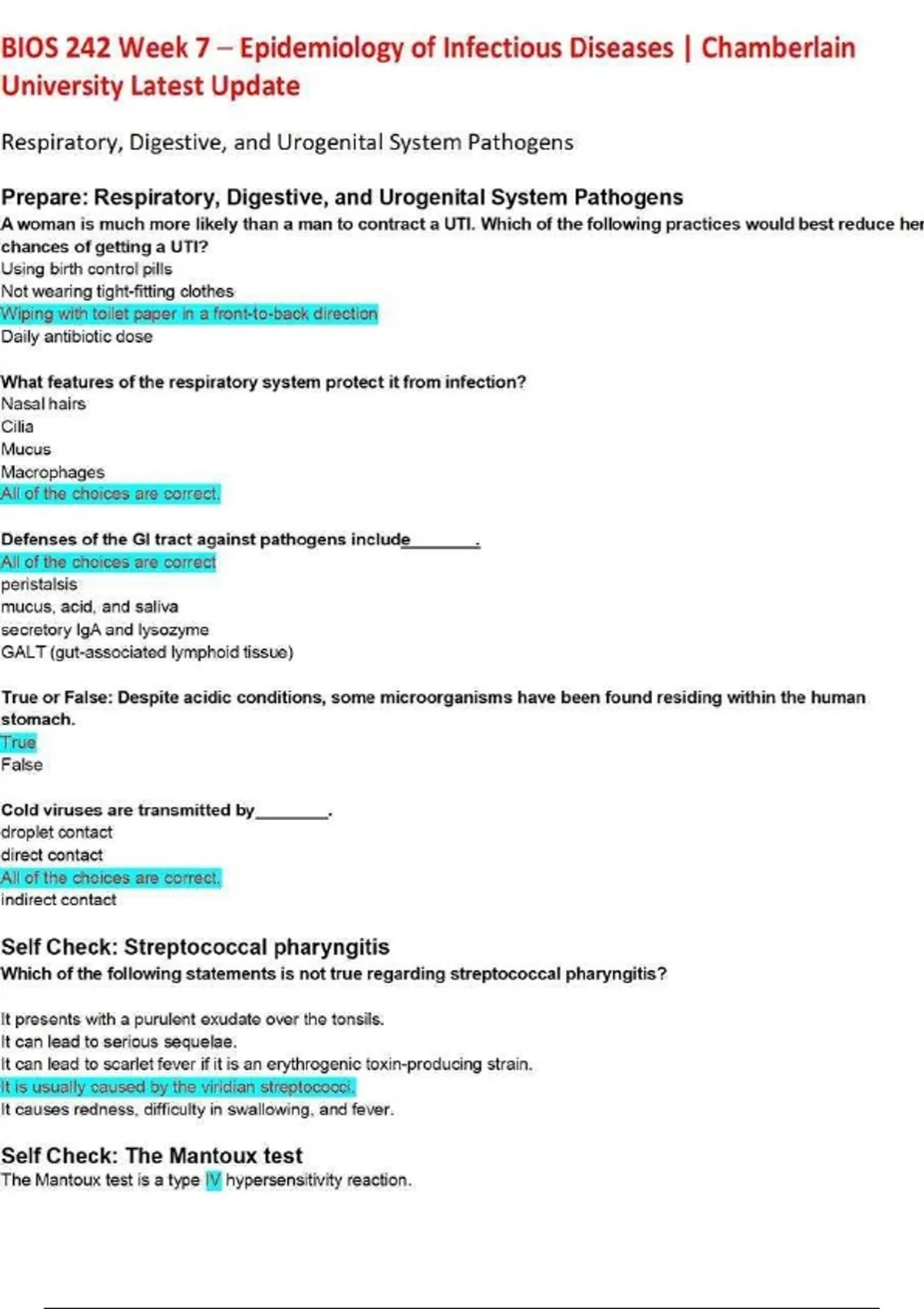 Summary BIOS 242 Week 7 - Epidemiology of Infectious Disease | Chamberlain University | Latest Update