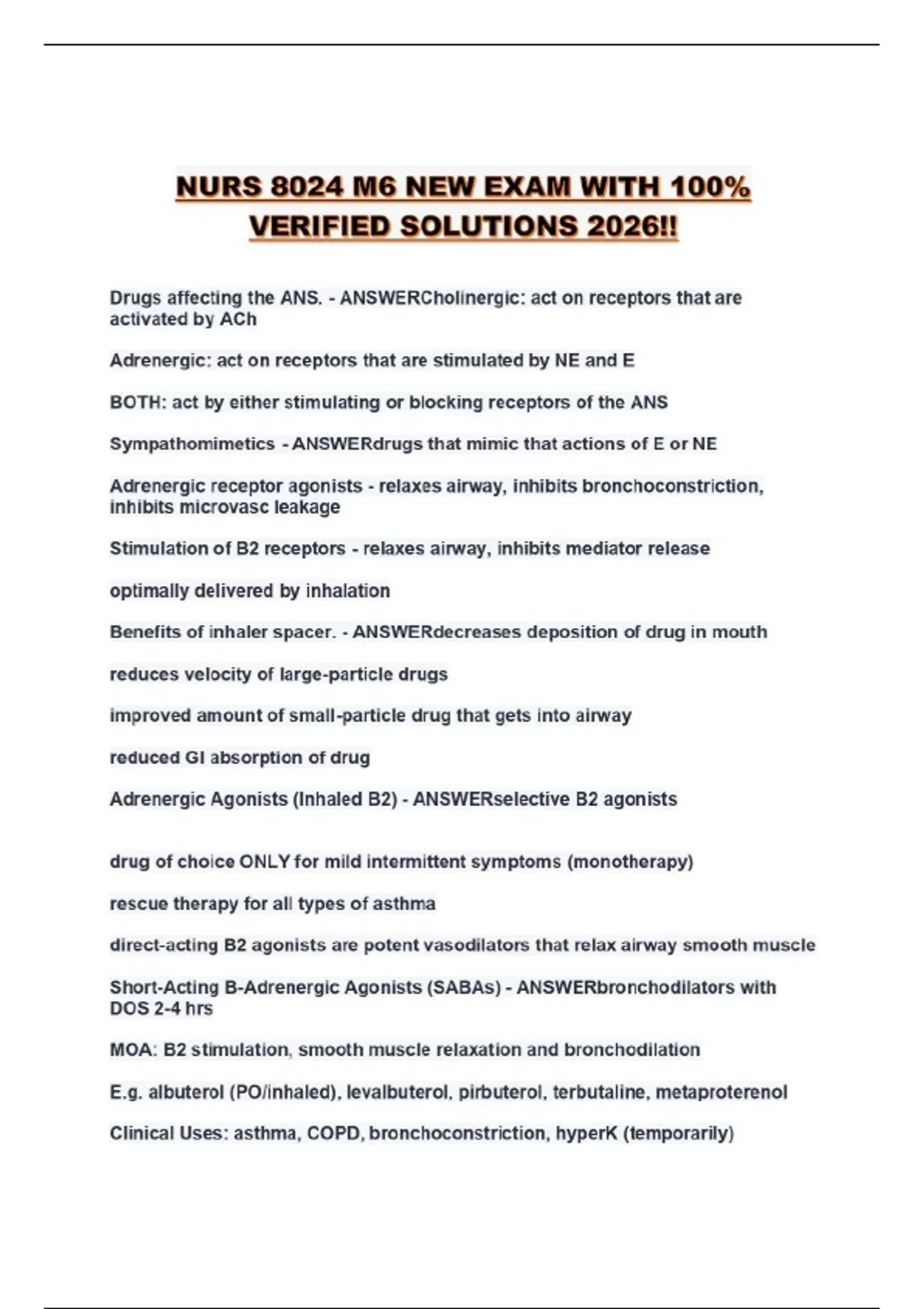 NURS 8024 M6 NEW EXAM WITH 100% VERIFIED SOLUTIONS 2026!!...