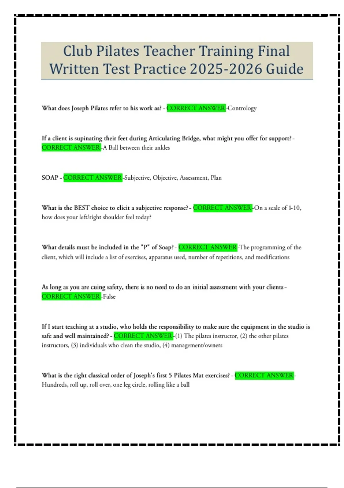 Club Pilates Teacher Training Final Written Test Practice Guide